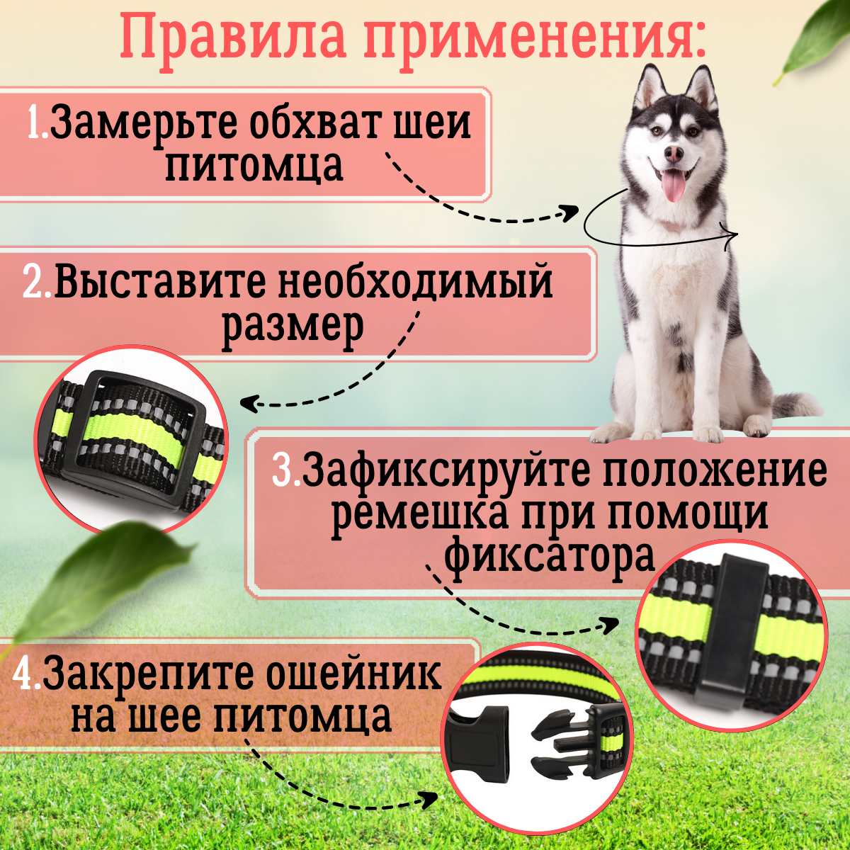 | Дополнительная информация | Регулируемый ошейник для собак со светоотражающей полоской |