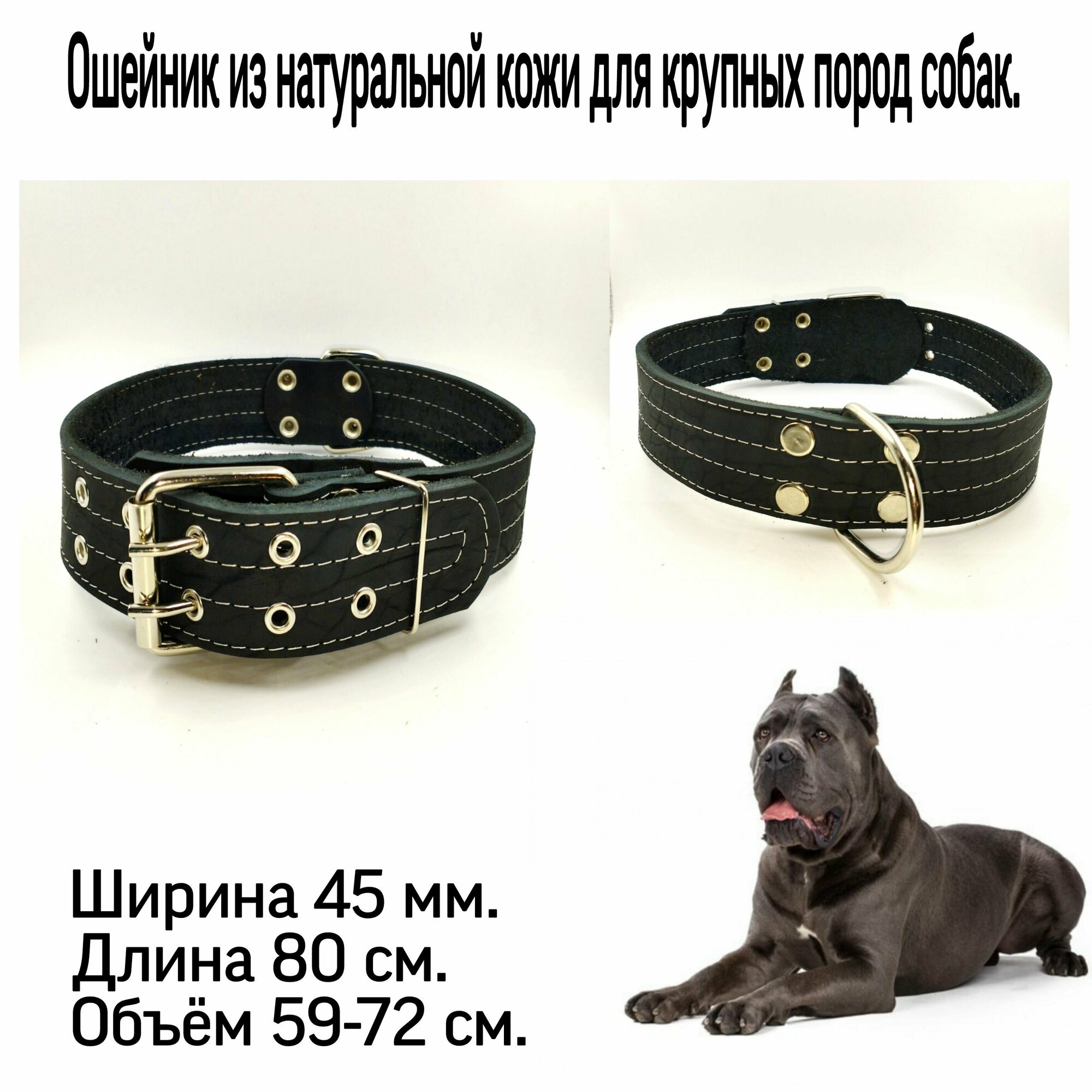 Ошейник из натуральной кожи, однослойный для собак крупных пород. Ширина 45 мм, длина 80 см, объём шеи 59-72 см. интересное:
