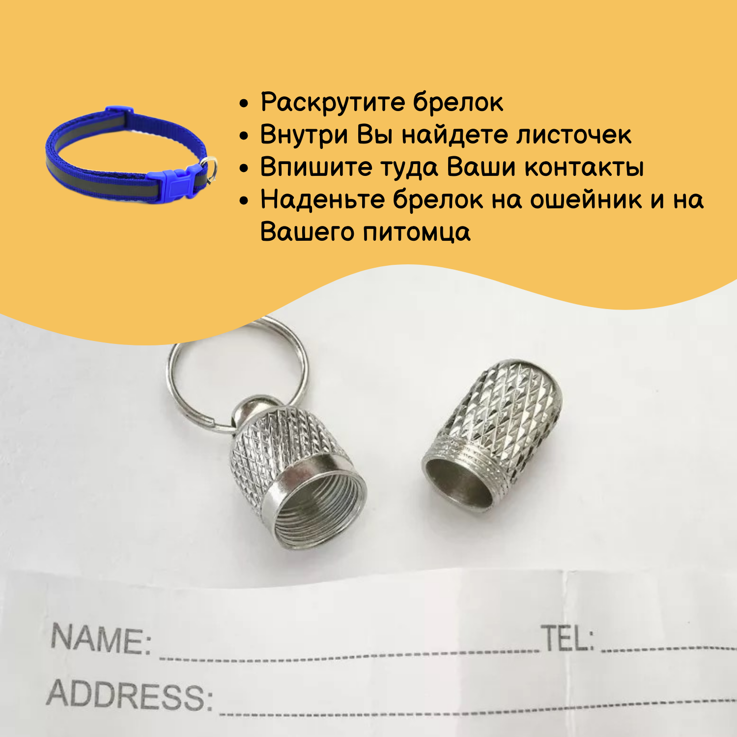 Ошейник с адресником желтый PET STUFF со светоотражающей полоской