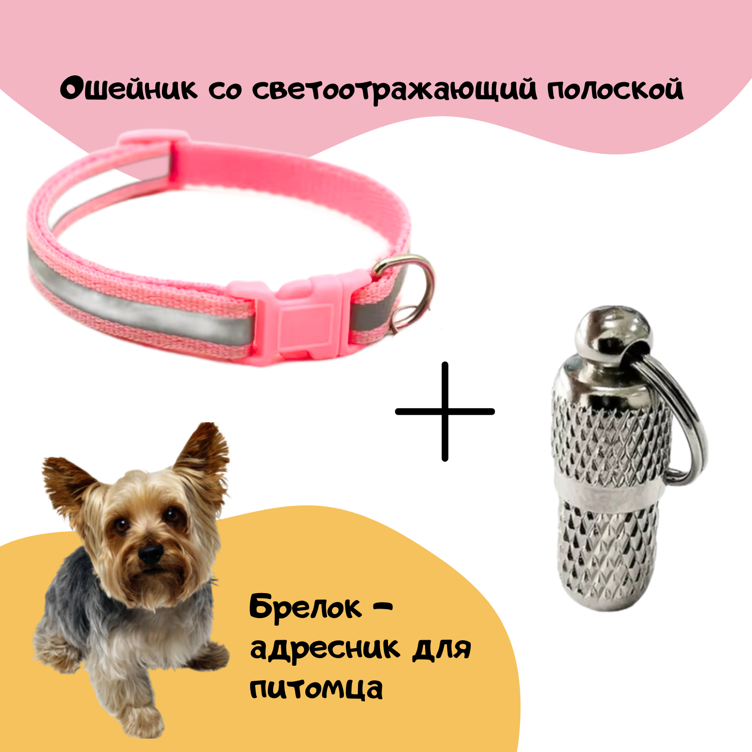 Ошейник с адресником розовый PET STUFF со светоотражающей полоской интересное: