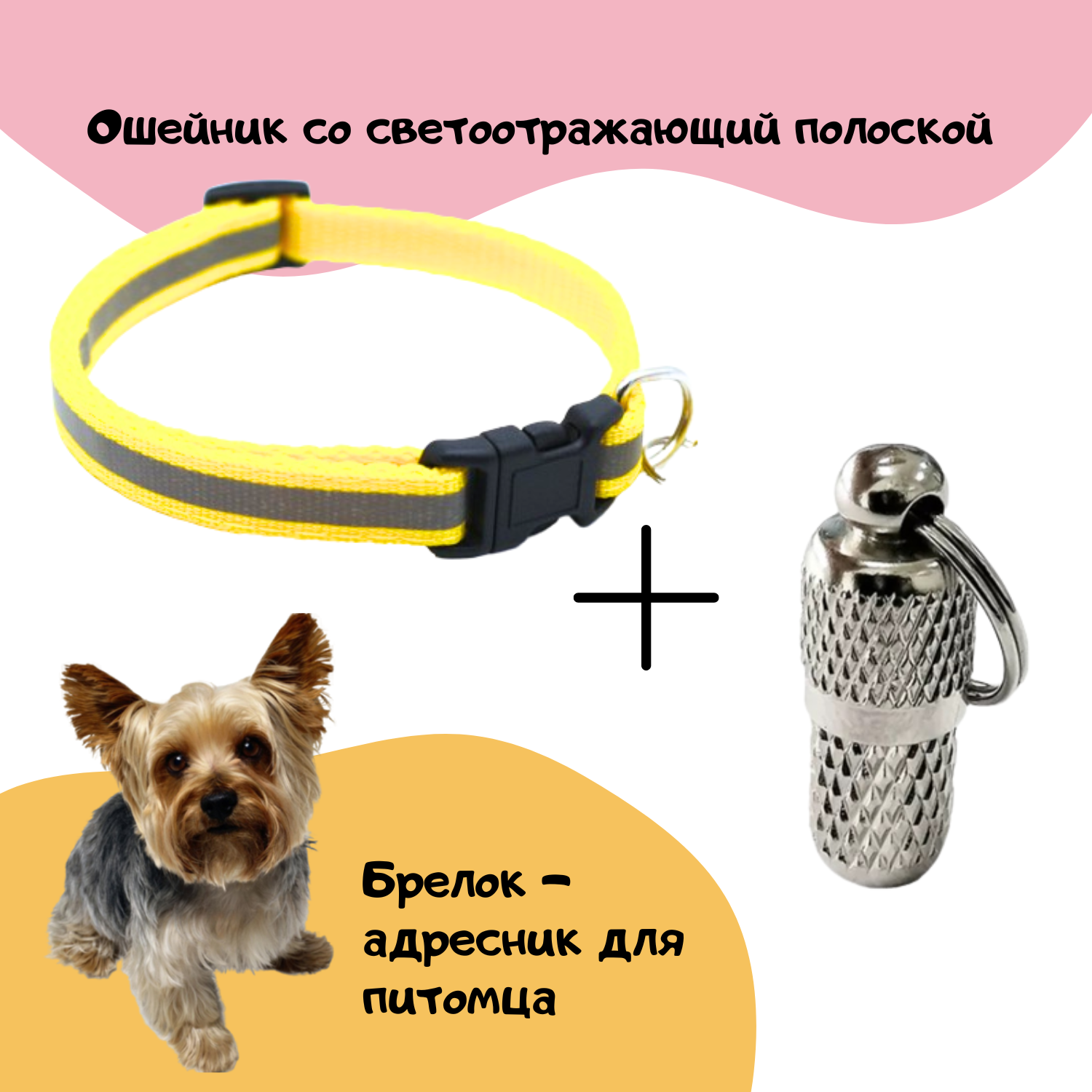 Ошейник с адресником желтый PET STUFF со светоотражающей полоской интересное: