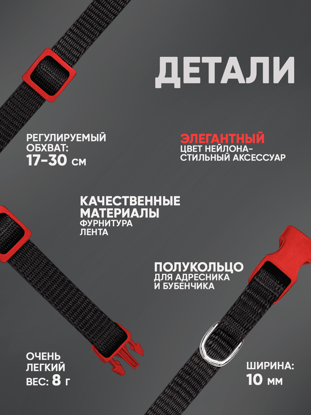 СохранитьОшейник для собак и кошек, ширина 10 мм, регулировка длины от 17 до 30 см, пластик, фастекс, лента (чёрный) 70-0884 интересное: