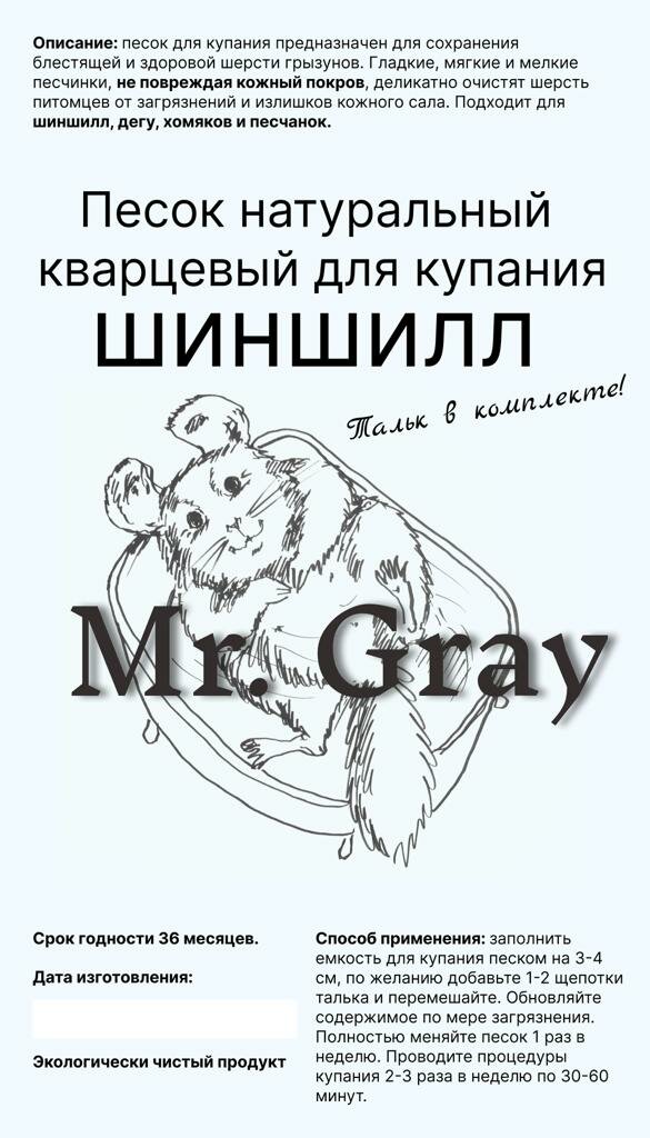 Mr. Gray, песок для купания шиншилл, грызунов, дегу, хомяков, песчанок, песчаный наполнитель для туалета в клетку . интересное: