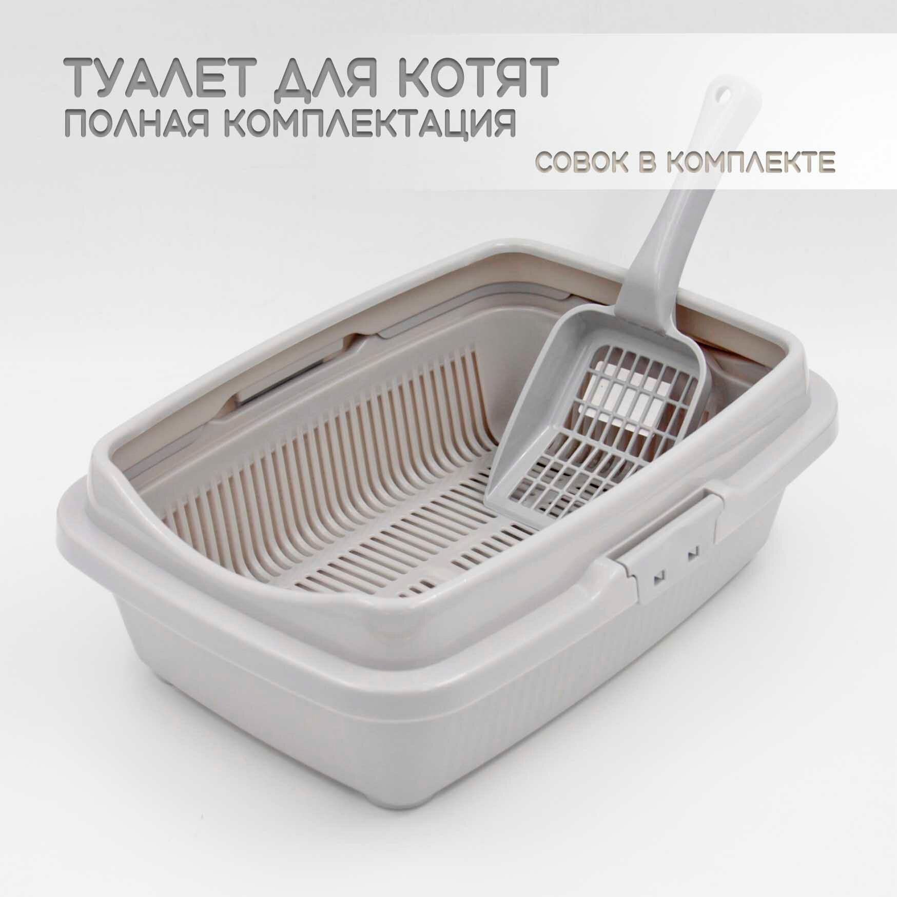 Купить Туалет для котят полная комплектация светло-серый + совок в подарок