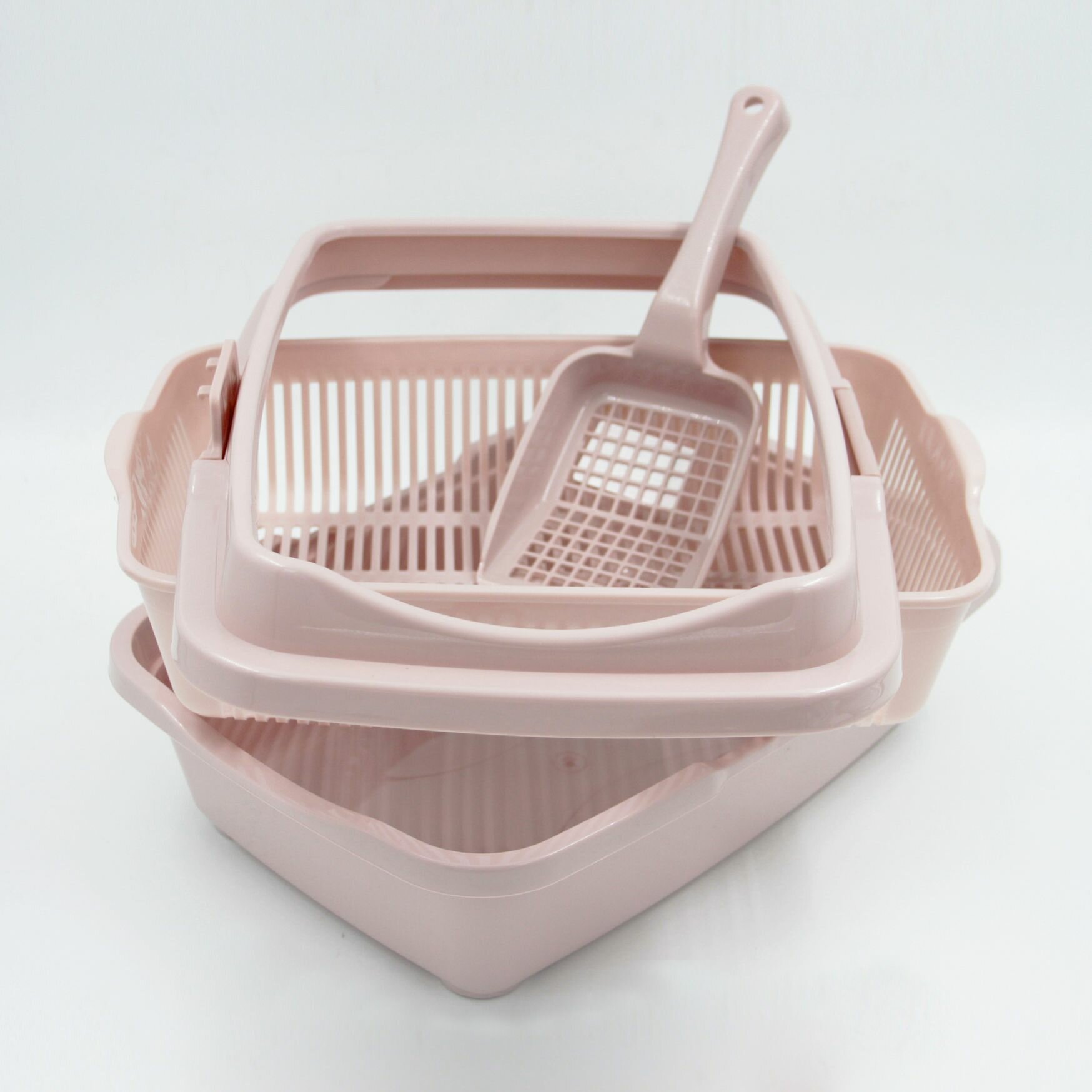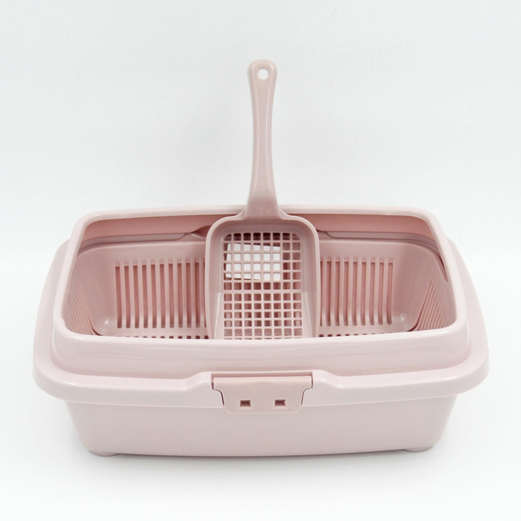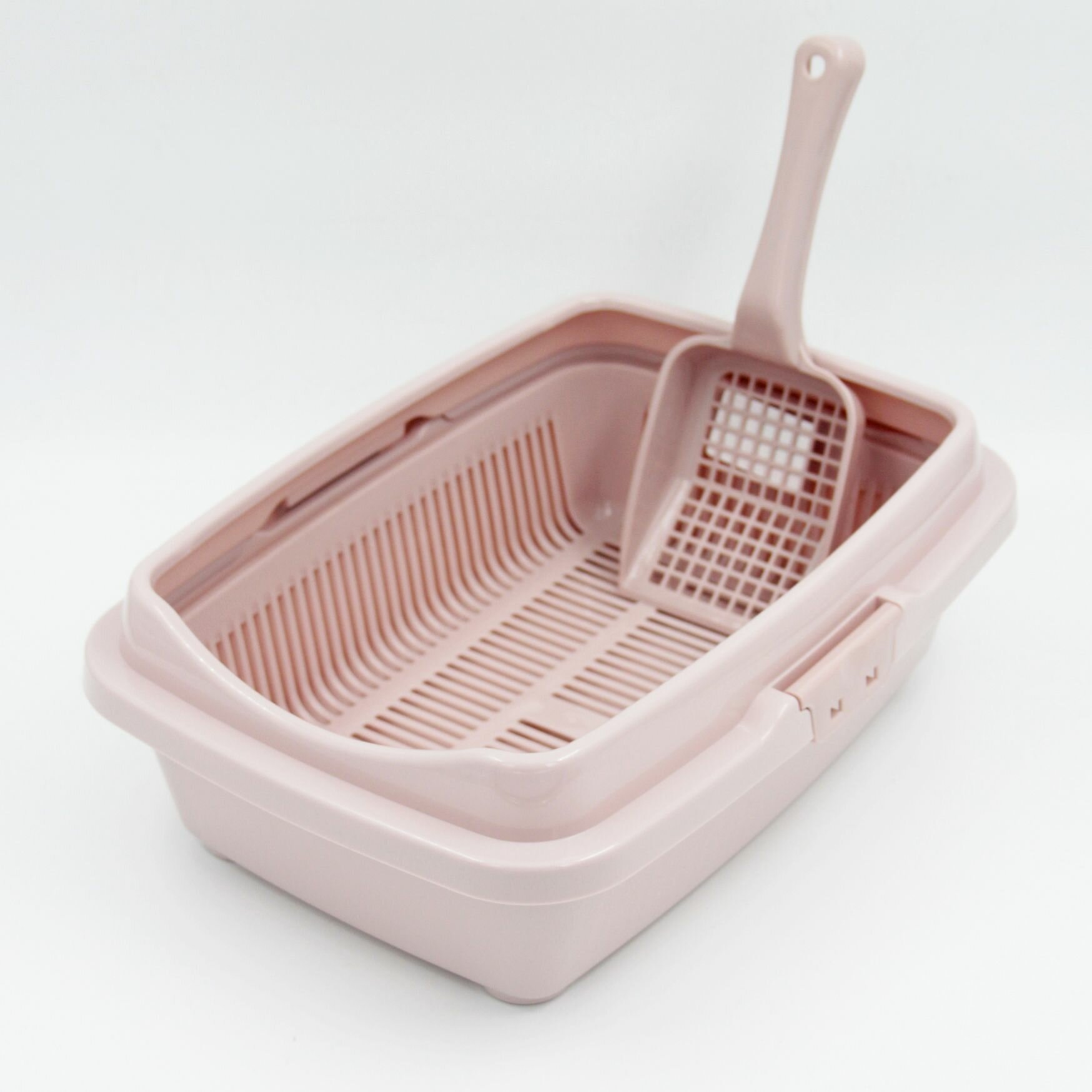 Горшок туалет для кошек и котят с лопаткой, пепельно-розовый