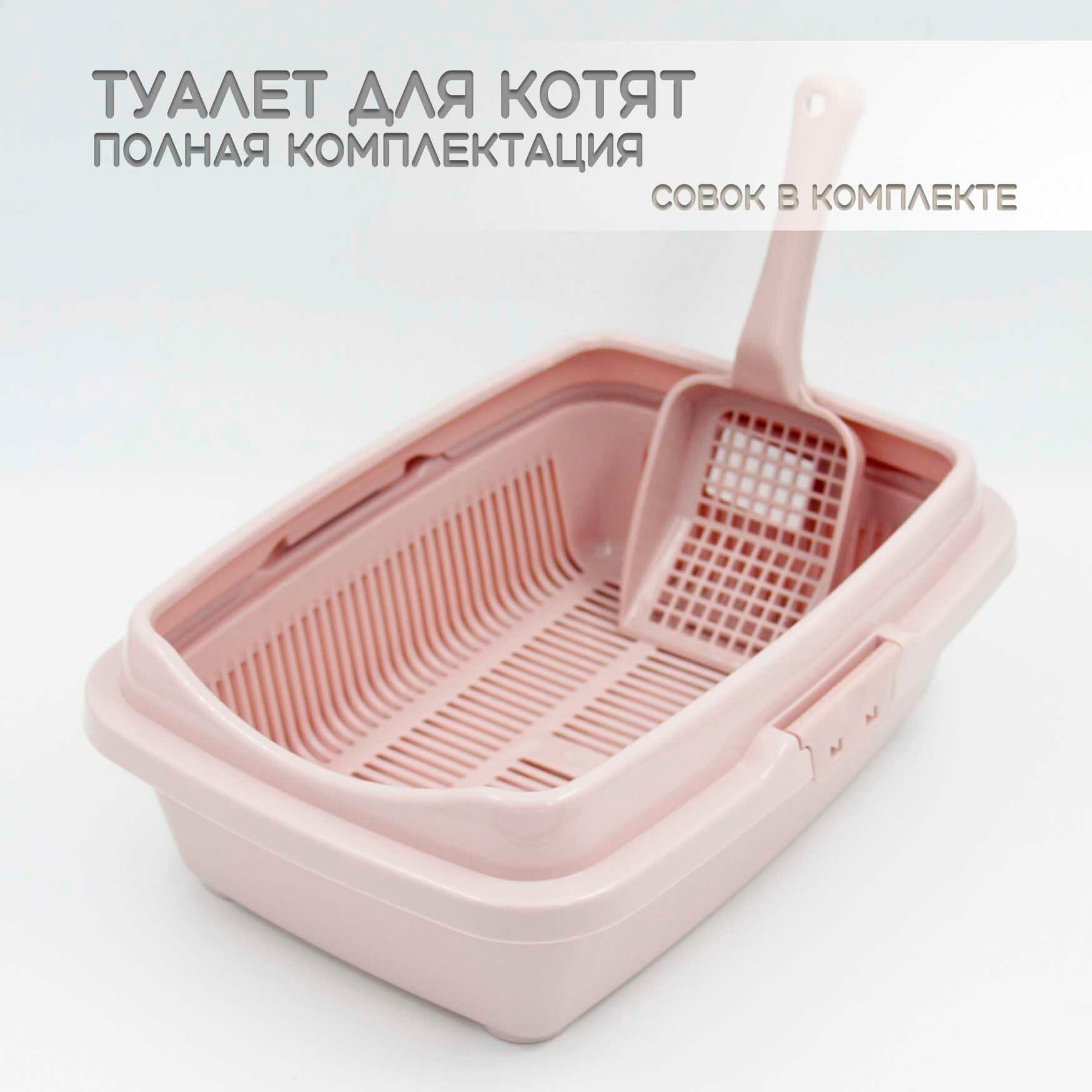 Купить Туалет для котят полная комплектация пепельно-розовый + совок в подарок