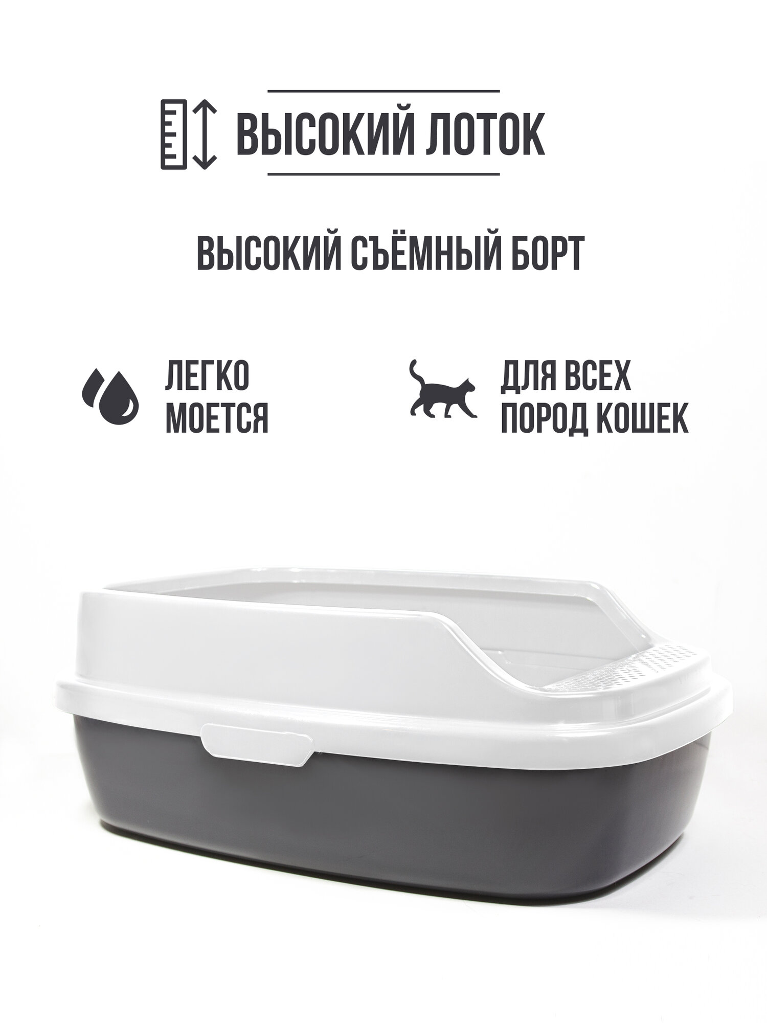 Лоток для кошек белый, серый, размер: 53х39х20 см. С высоким бортом интересное: