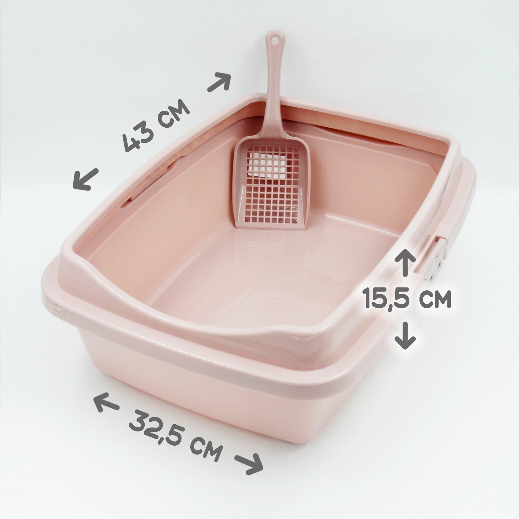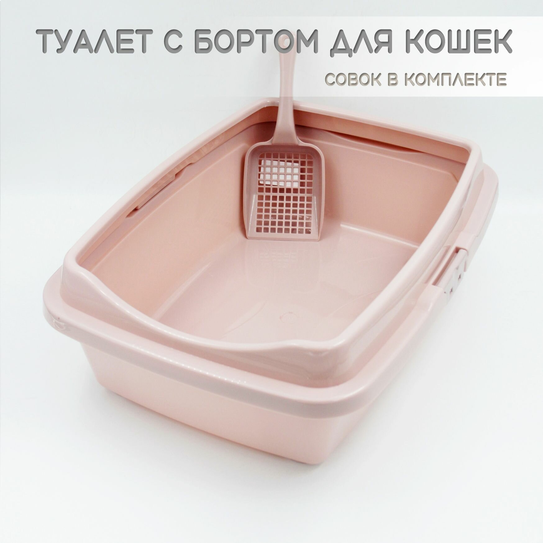 Туалет для кошек большой с бортом пепельно- розовый + совок в подарок