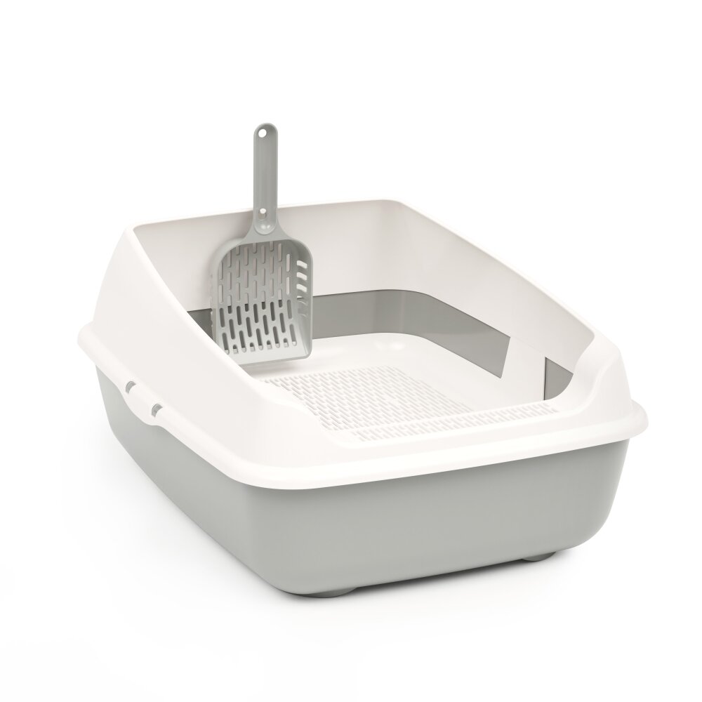Купить Набор для кошек (лоток с высокими бортами 50,5*39*23 см, сеткой и совком) (серый)