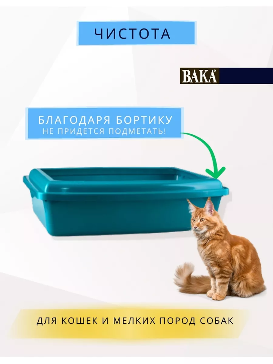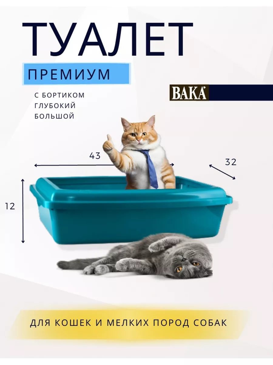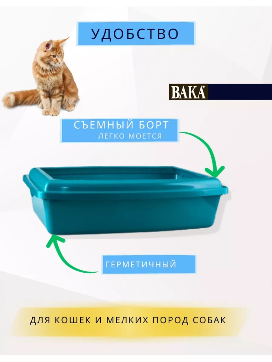 Туалет для кошек Премиум "глубокий С бортиком" (Морская волна) вака [430*325*120] интересное: