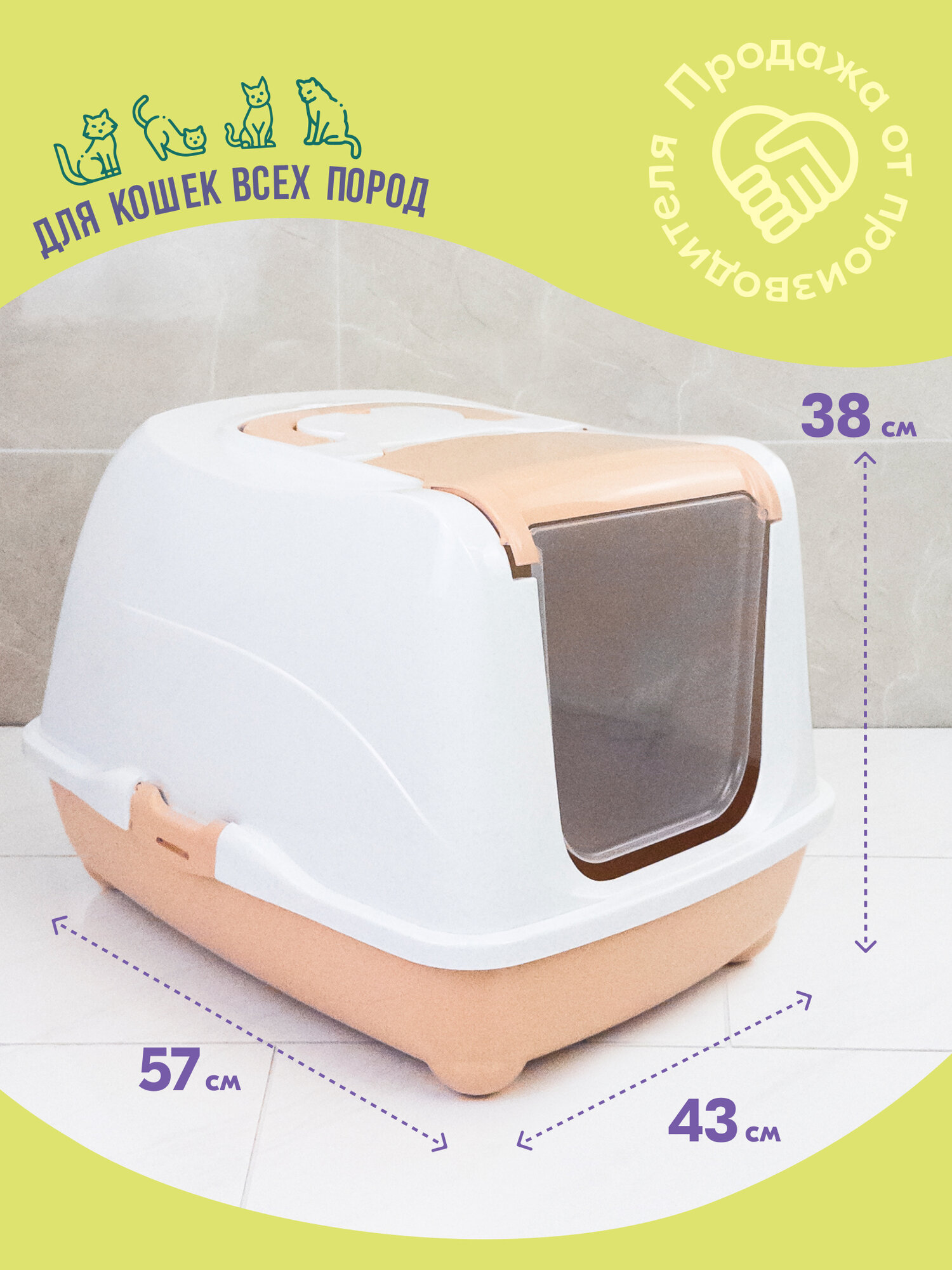 Купить Туалет-домик для кошек "PetTails" большой закрытый с дверцей 57*43*h38см (полипропилен), бежевый низ/мраморный верх