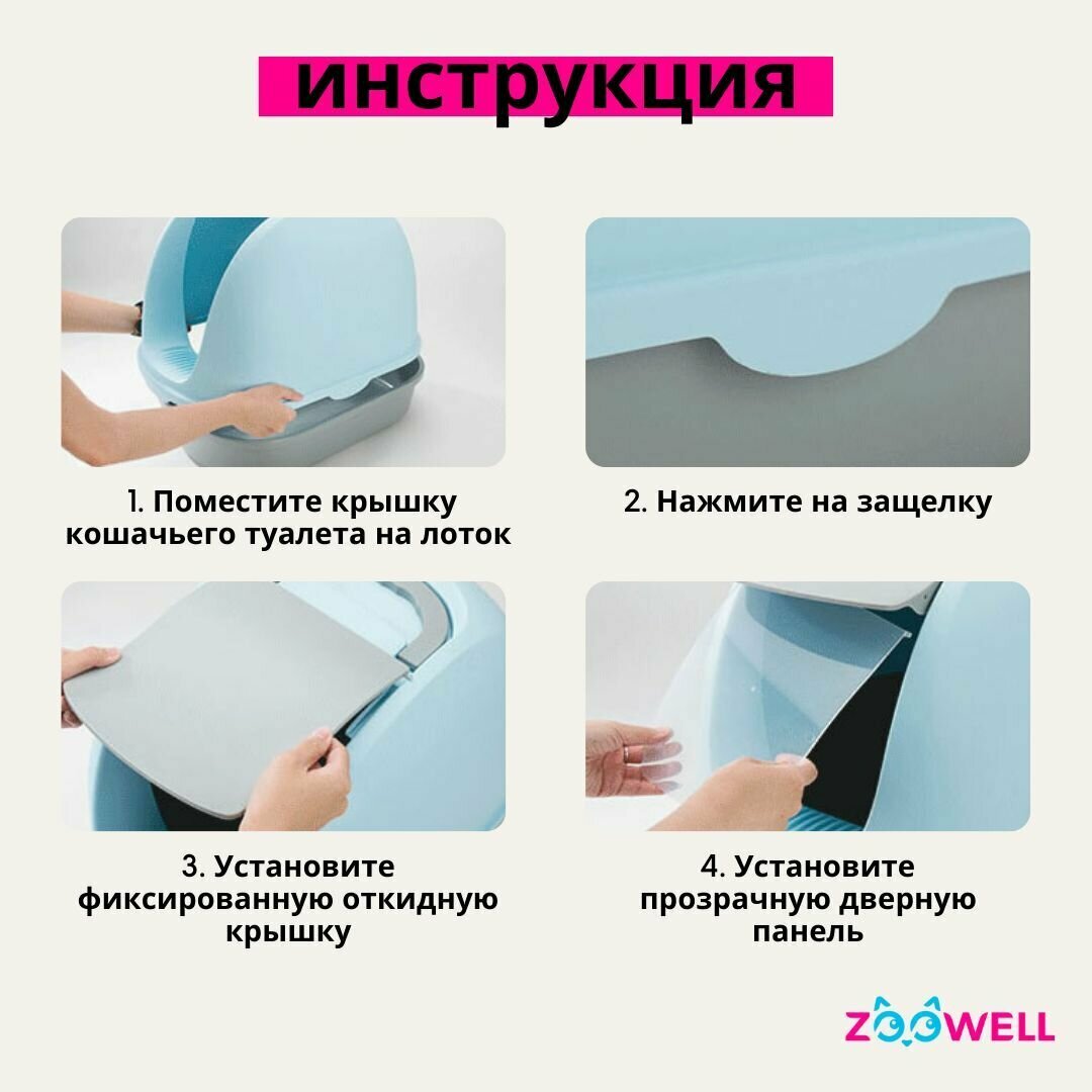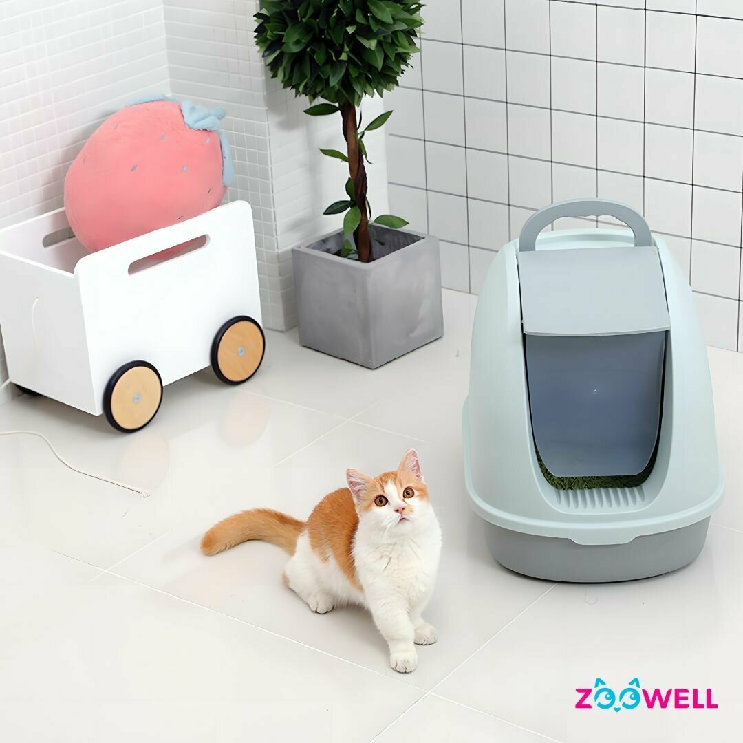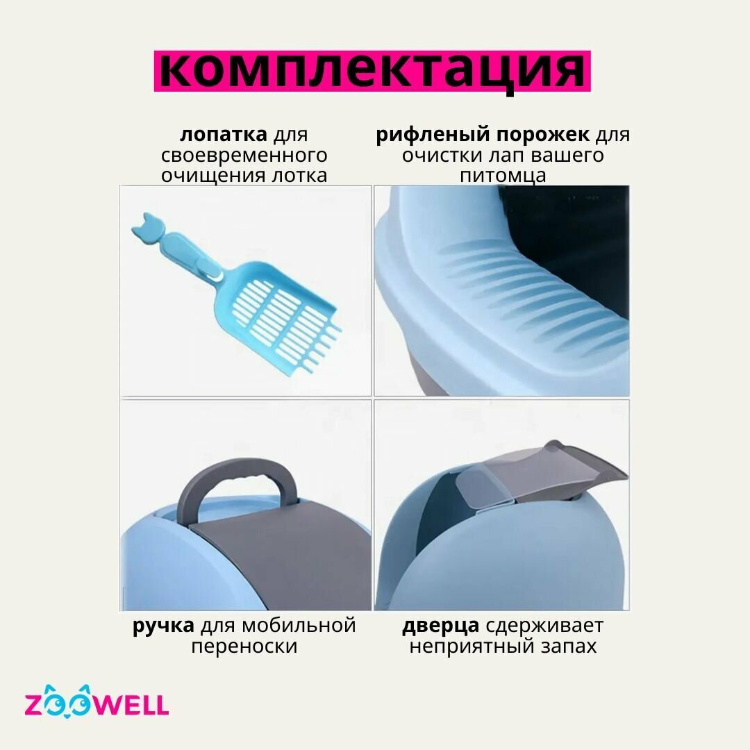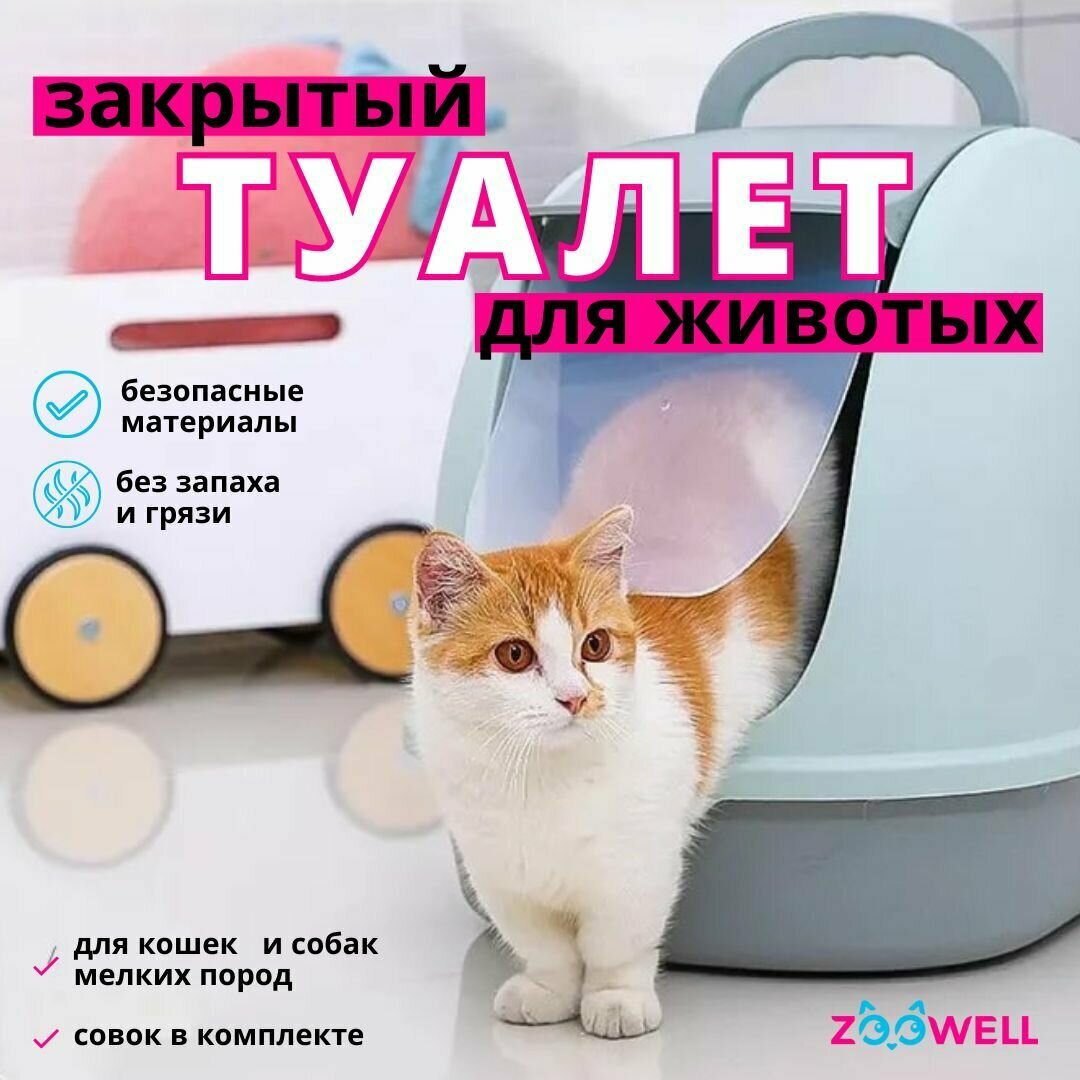 Туалет для кошек Zoowell QDU040blue закрытый 56*39*42, голубой интересное: