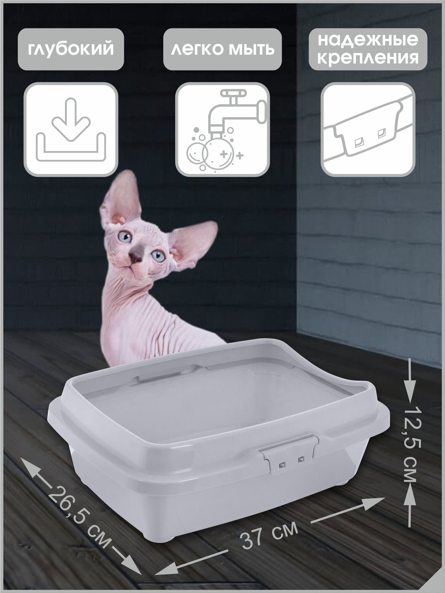 СохранитьЛоток Туалет для кошек с бортом, светло-серый , 26,5 х 37 х 12,5 см интересное: