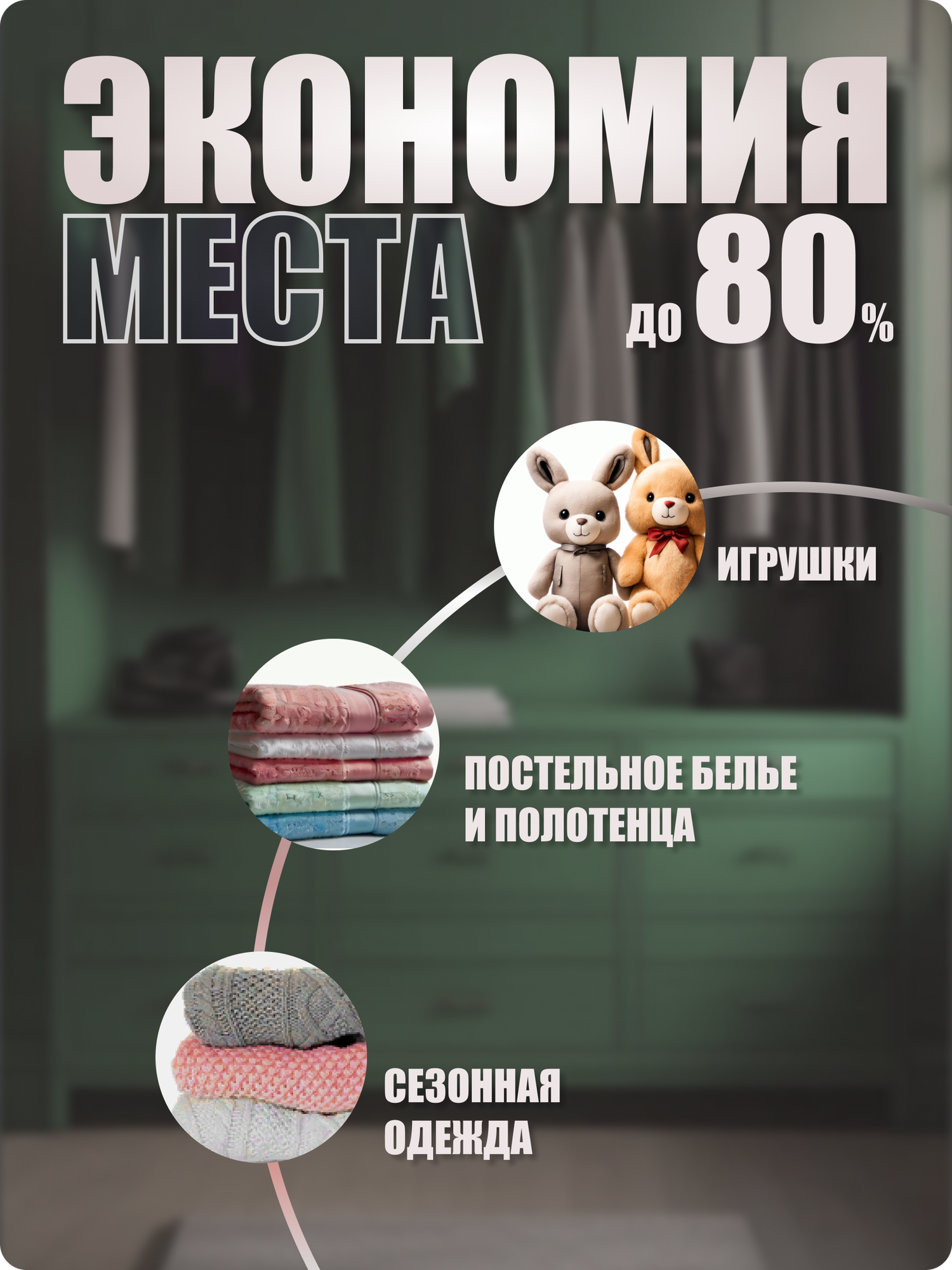 Вакуумные пакеты для одежды и хранения вещей 5 шт.