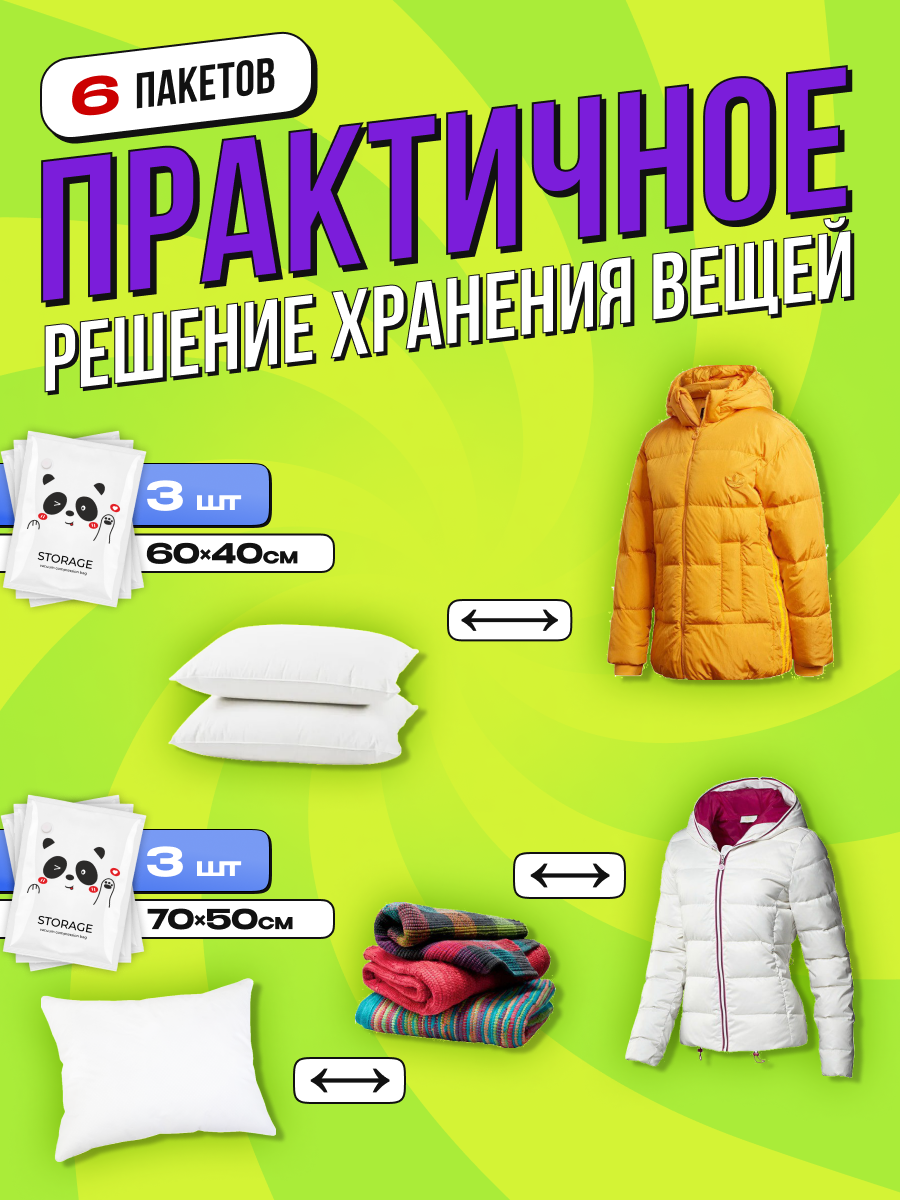 Вакуумные пакеты для одежды и хранения вещей 5 шт.