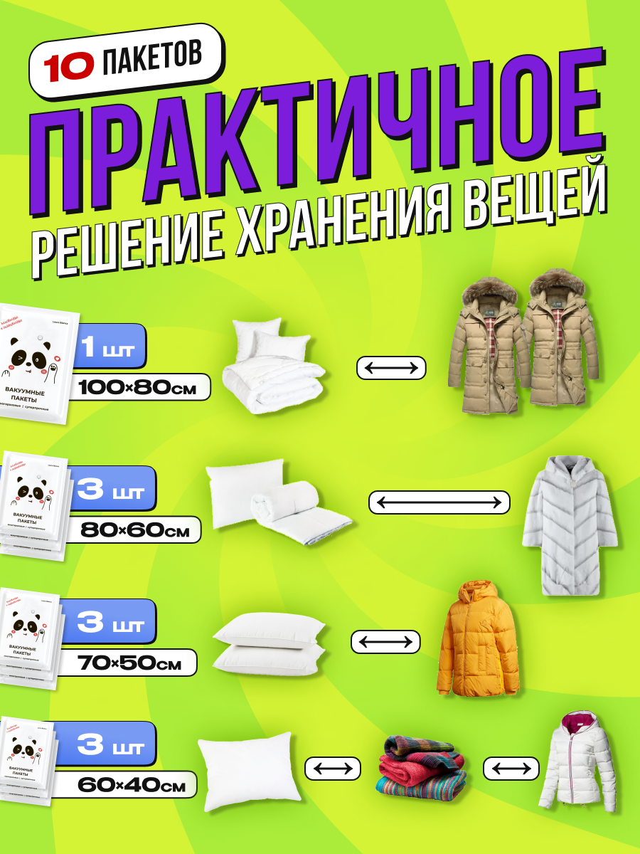 Вакуумные пакеты для одежды с насосом Laura Bianca Набор 10 шт интересное:
