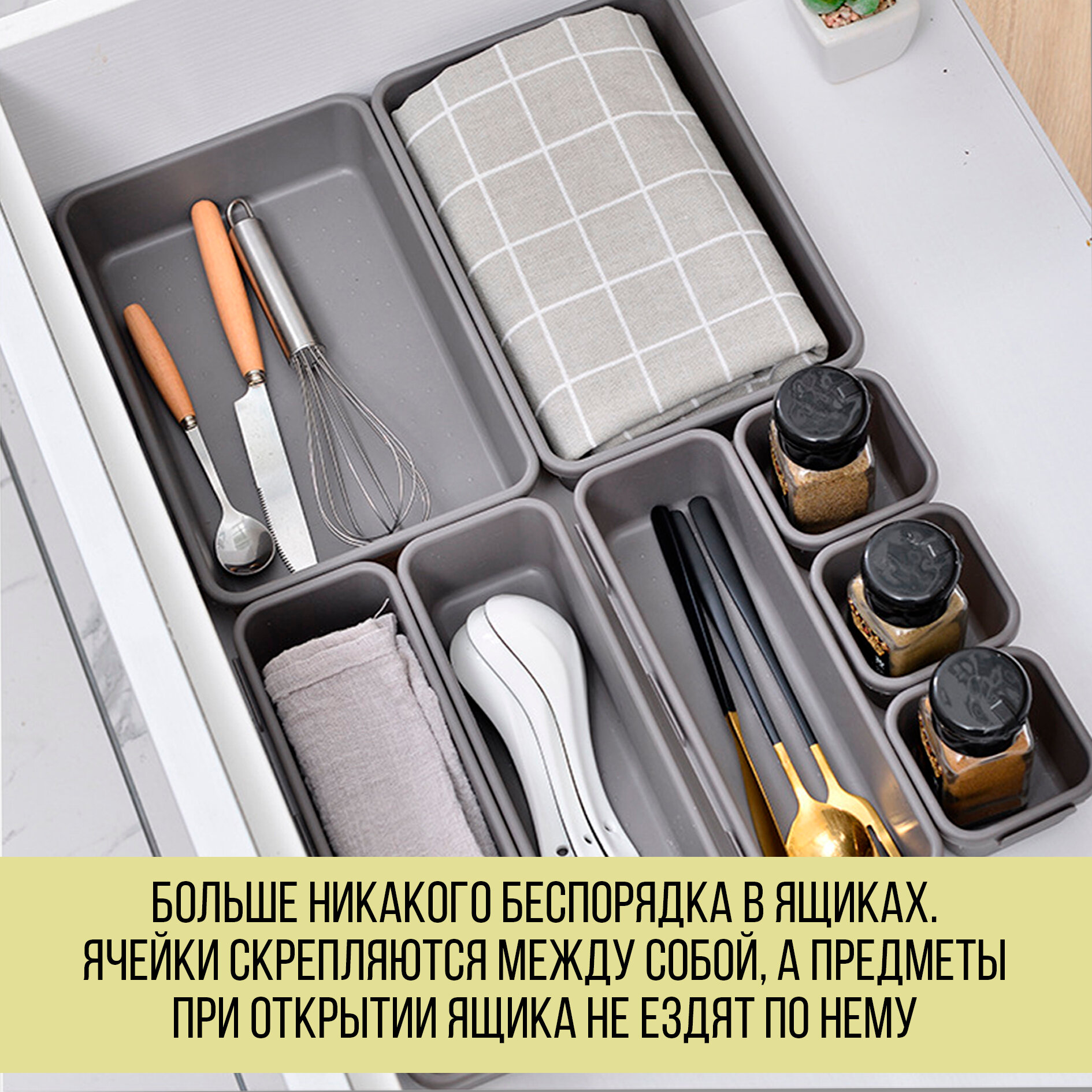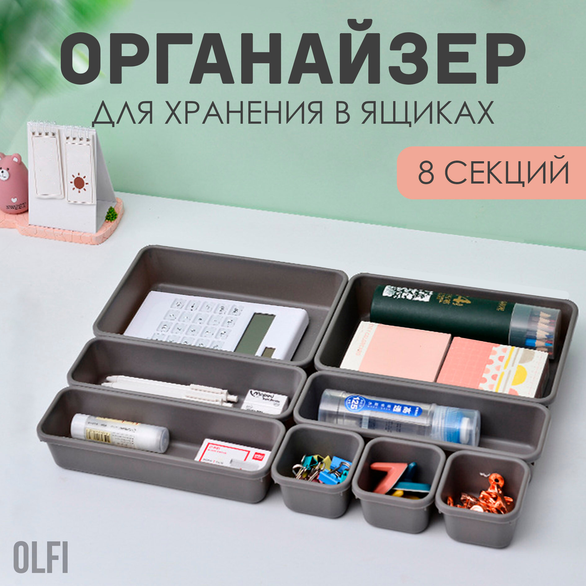 Набор органайзеров для хранения 8 штук, Органайзер для косметики и мелочей, Разделитель для ящиков, Olfi, графитовый интересное: