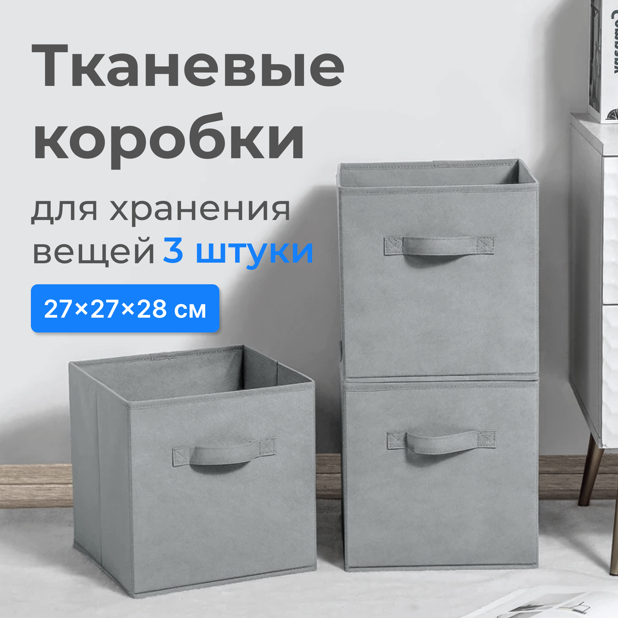 Коробки для хранения вещей, игрушек / кофры / короба стеллажные, комплект из трёх штук, 27x27x28 см, цвет: серый интересное:
