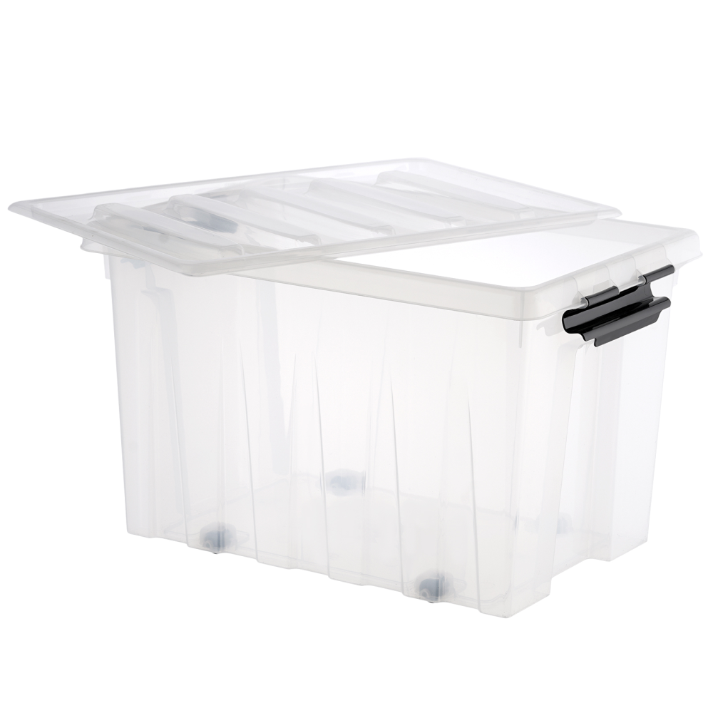Ящик Rox Box п/п 589х396х355 мм 70Л с крышкой и клипсами, на роликах, прозр