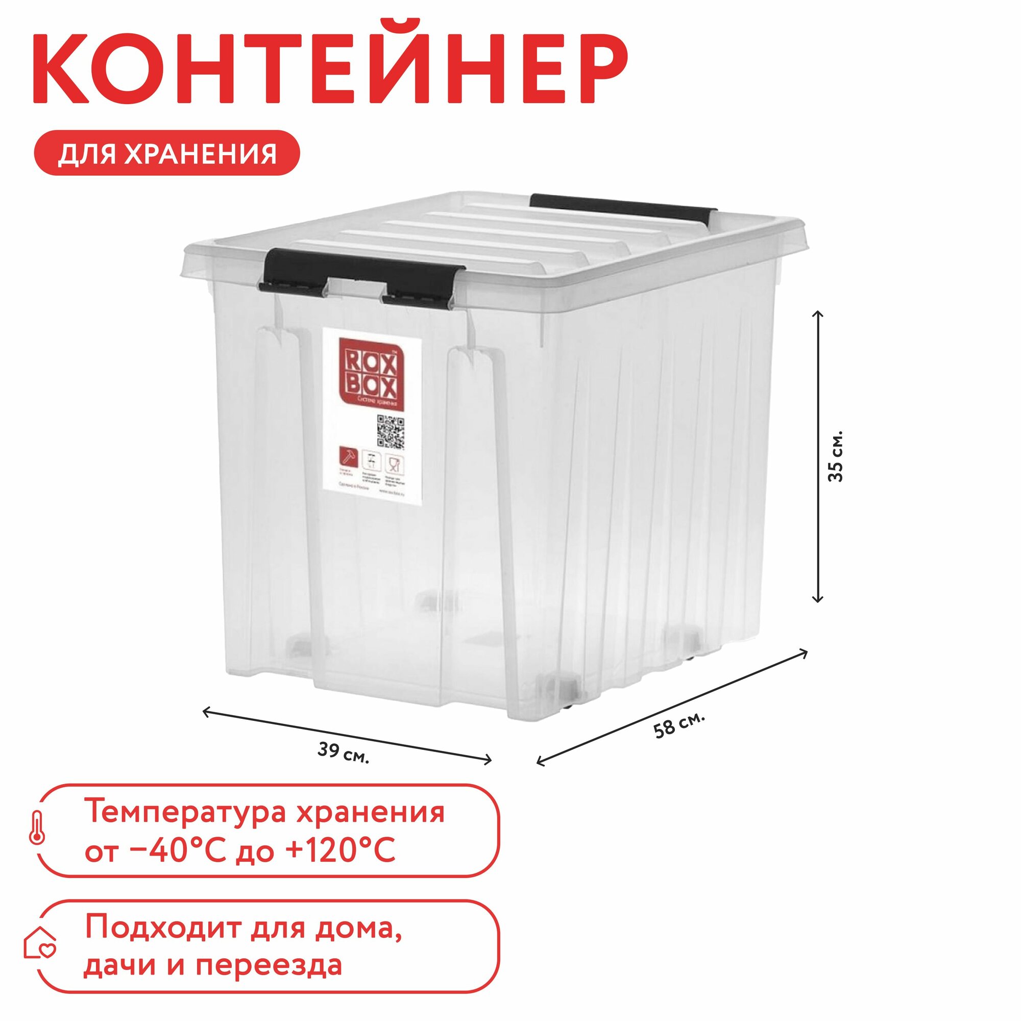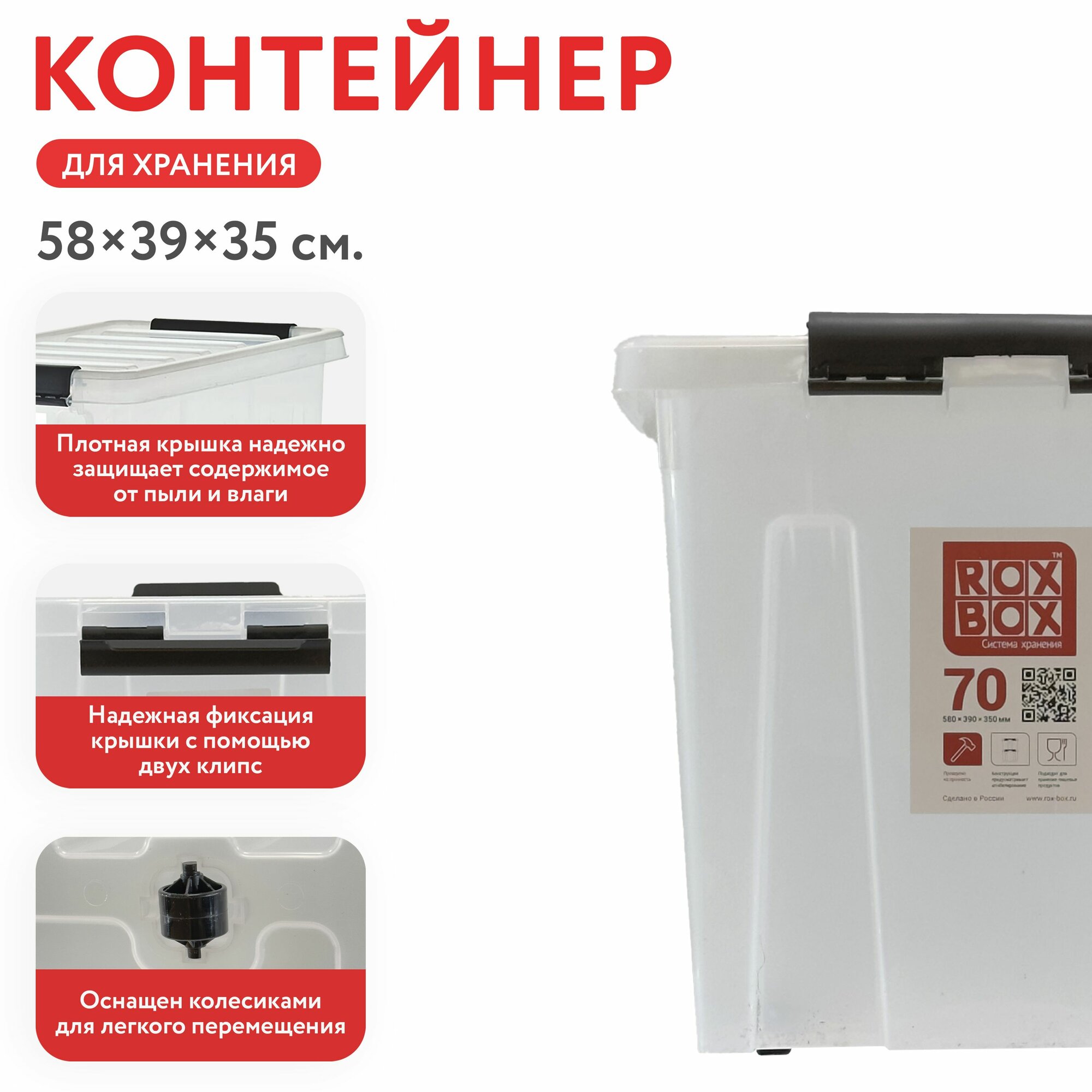 Контейнер Rox Box 58x39x35 см 70 л пластик с крышкой и роликами цвет прозрачный