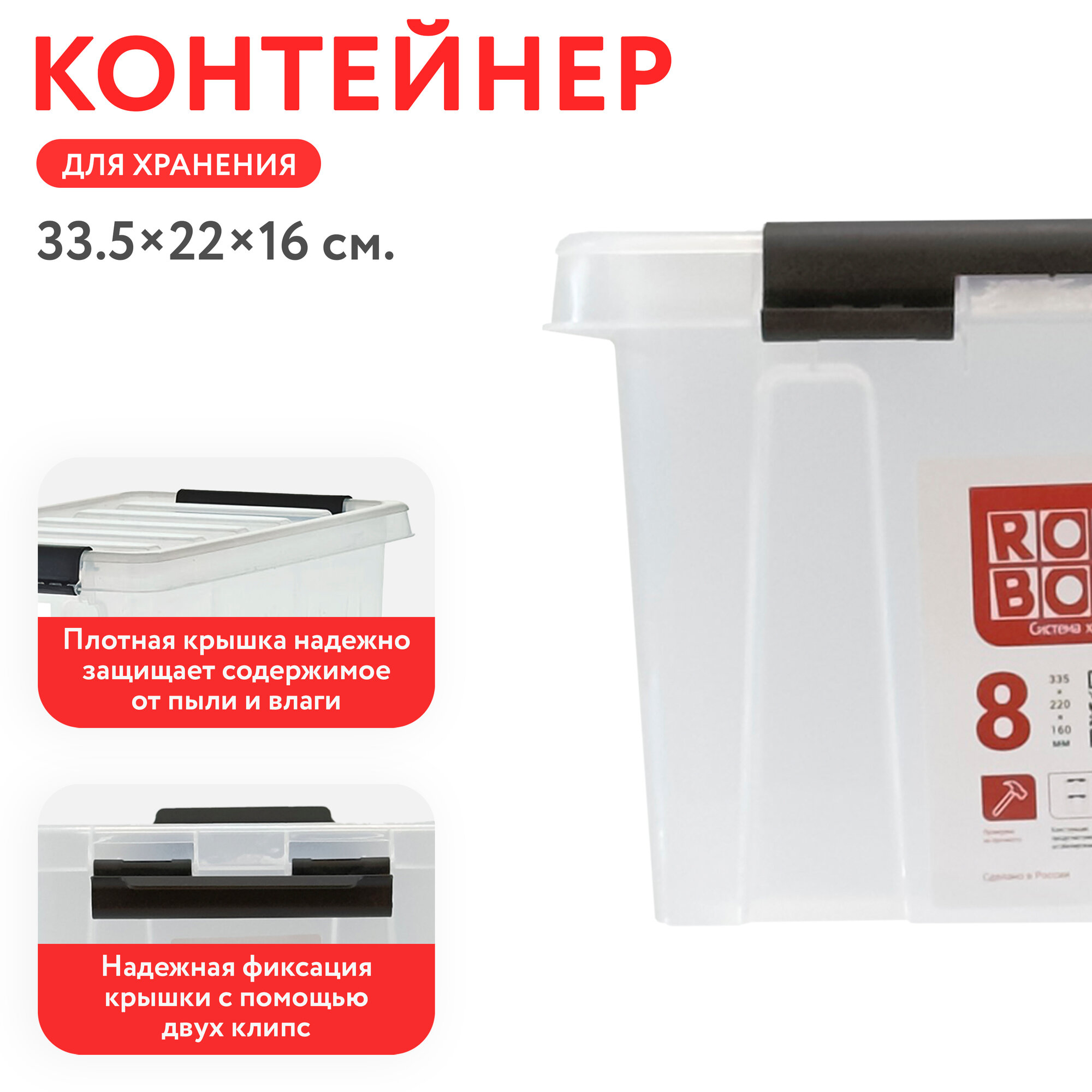 Купить Контейнер для хранения RoxBox с крышкой, 8 л, 33,5х22х16 см, прозрачный, пластиковый