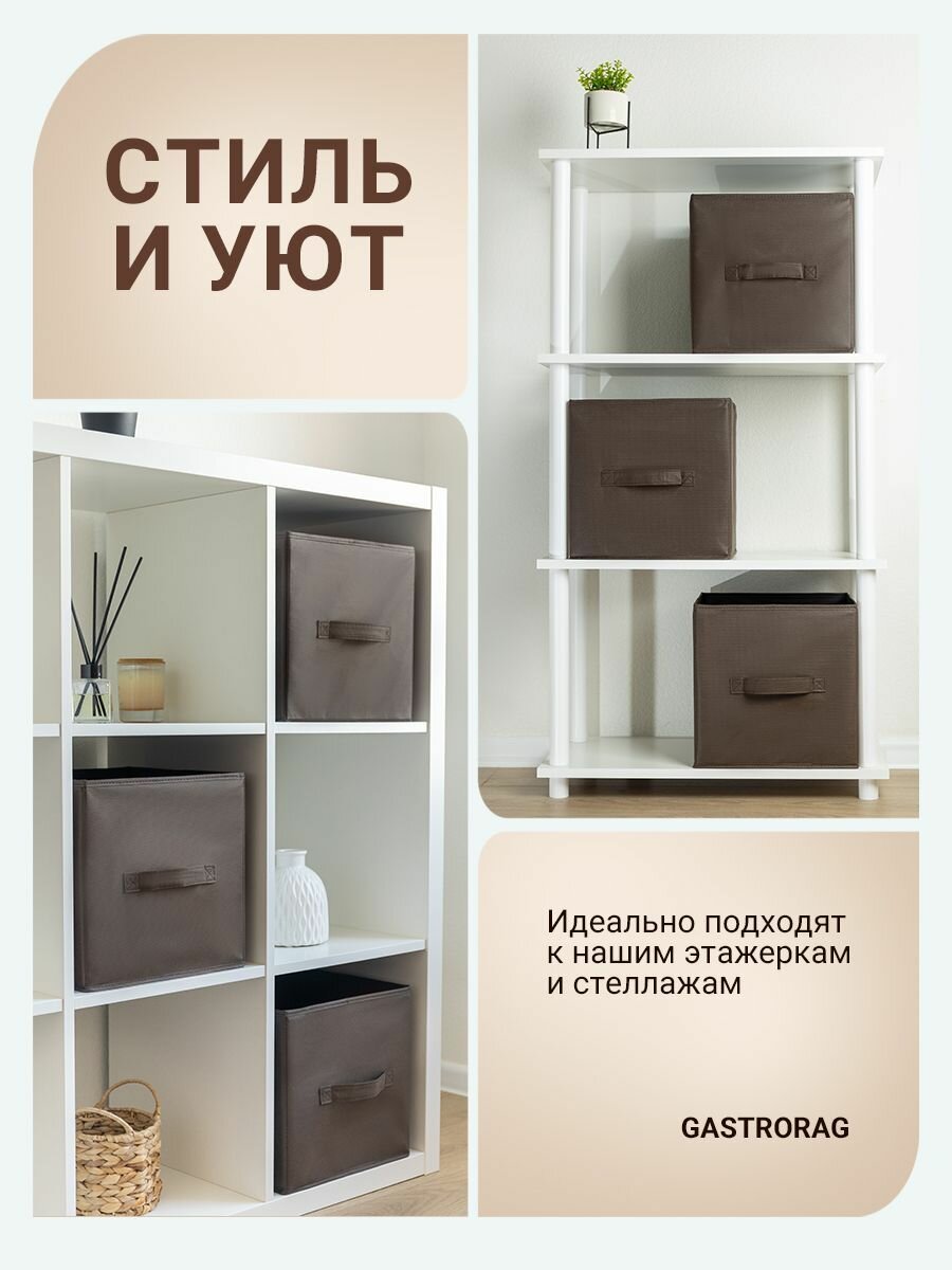 СохранитьКоробки для хранения 3 шт. Gemlux Уютный дом 28х28х28 см, тканевые складные короба для игрушек, контейнеры для одежды, ящики для белья, органайзеры для мелочей, цвет коричневый интересное: