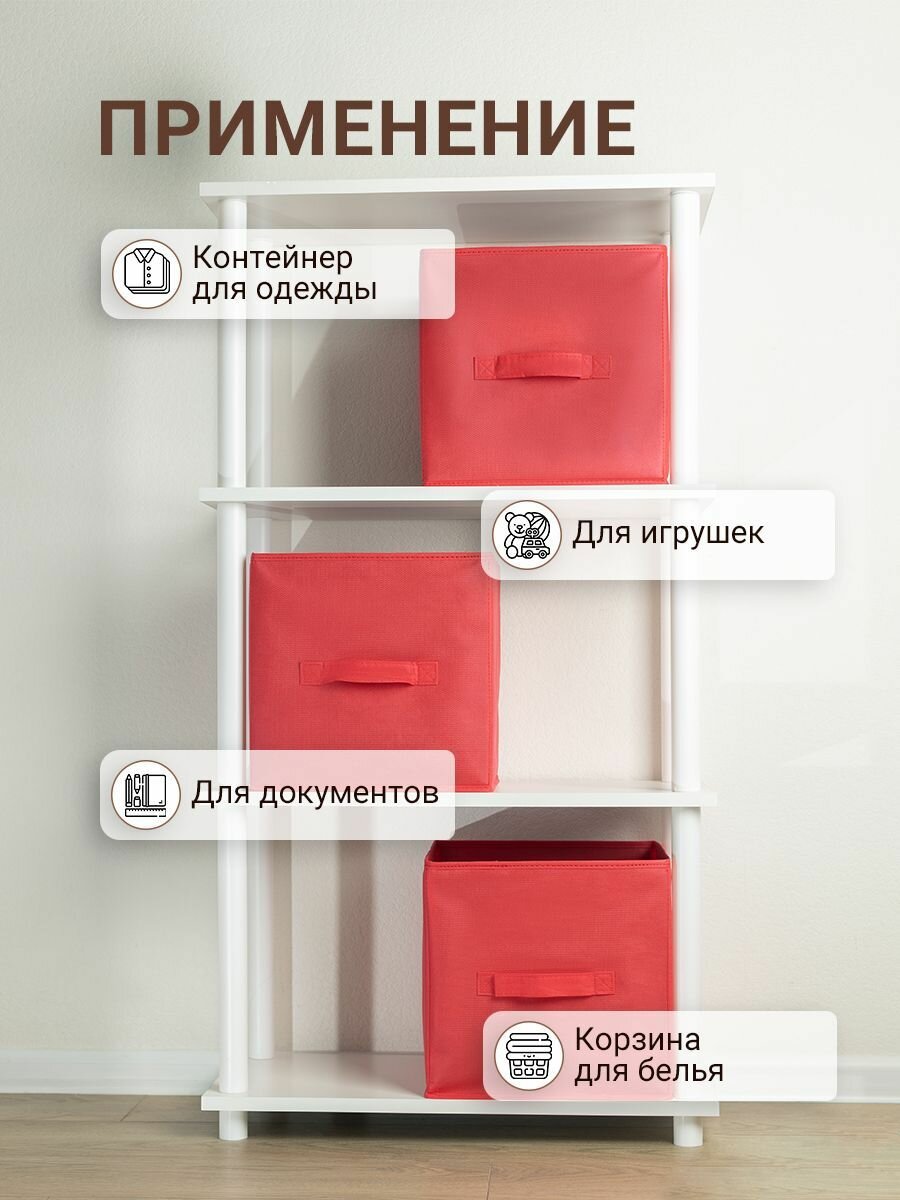 Купить Коробки для хранения 3 шт. Gemlux Уютный дом 28х28х28 см, тканевые складные короба для игрушек, контейнеры для одежды, ящики для белья, органайзеры для мелочей, цвет красный