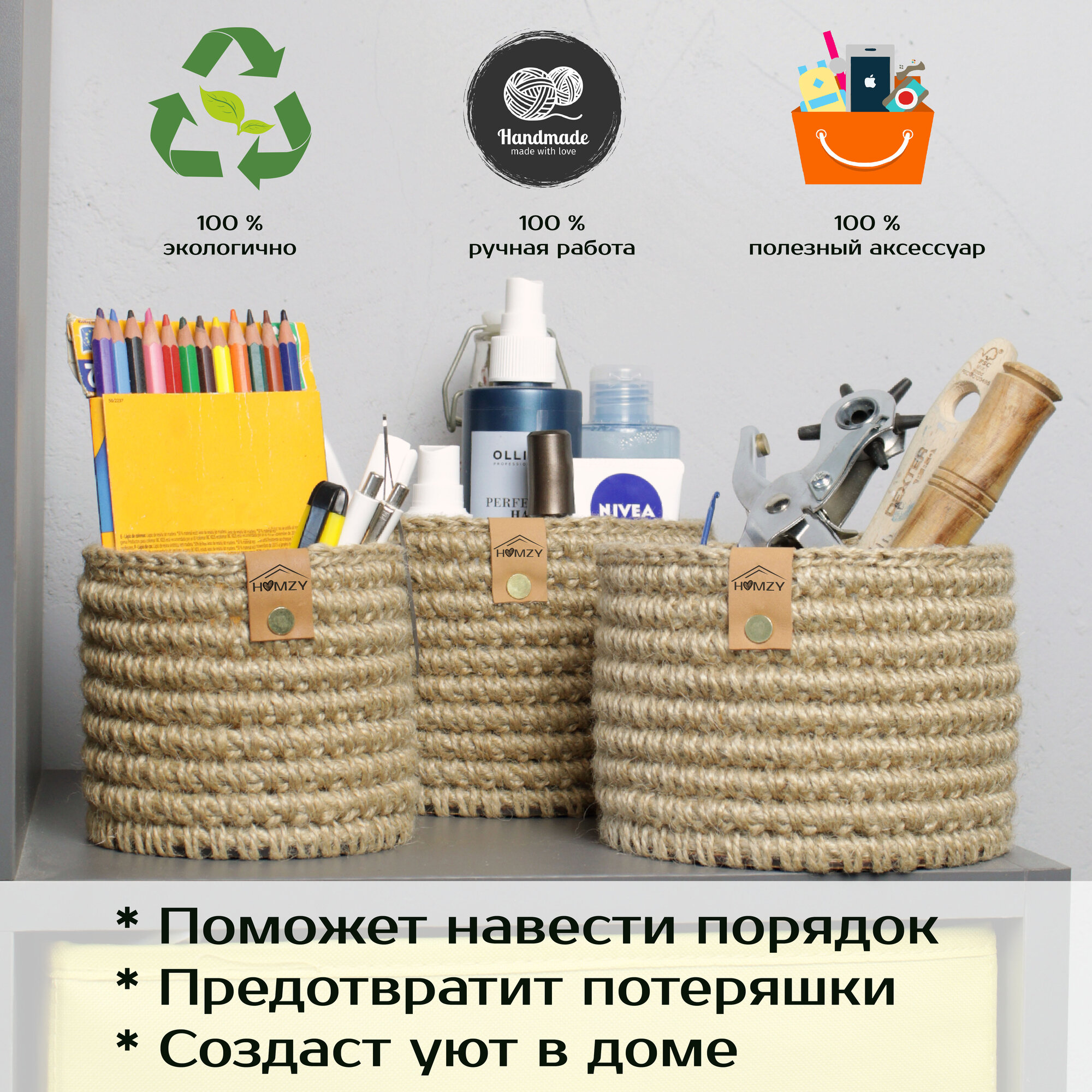 Набор плетеных вязаных корзин из джута для хранения дома и на даче HOMZY интересное: