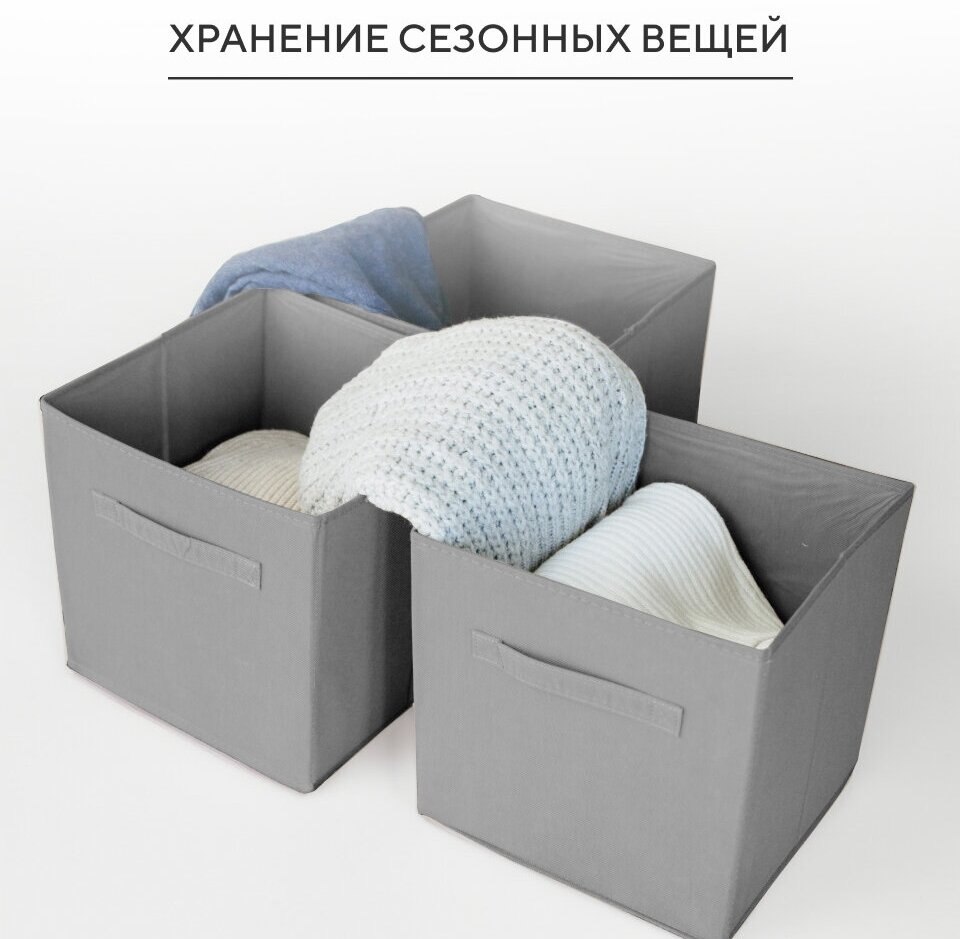 Коробка для хранения вещей, тканевая, складная, органайзер для белья и одежды, набор 3 шт, 28*28*28 см, серый интересное: