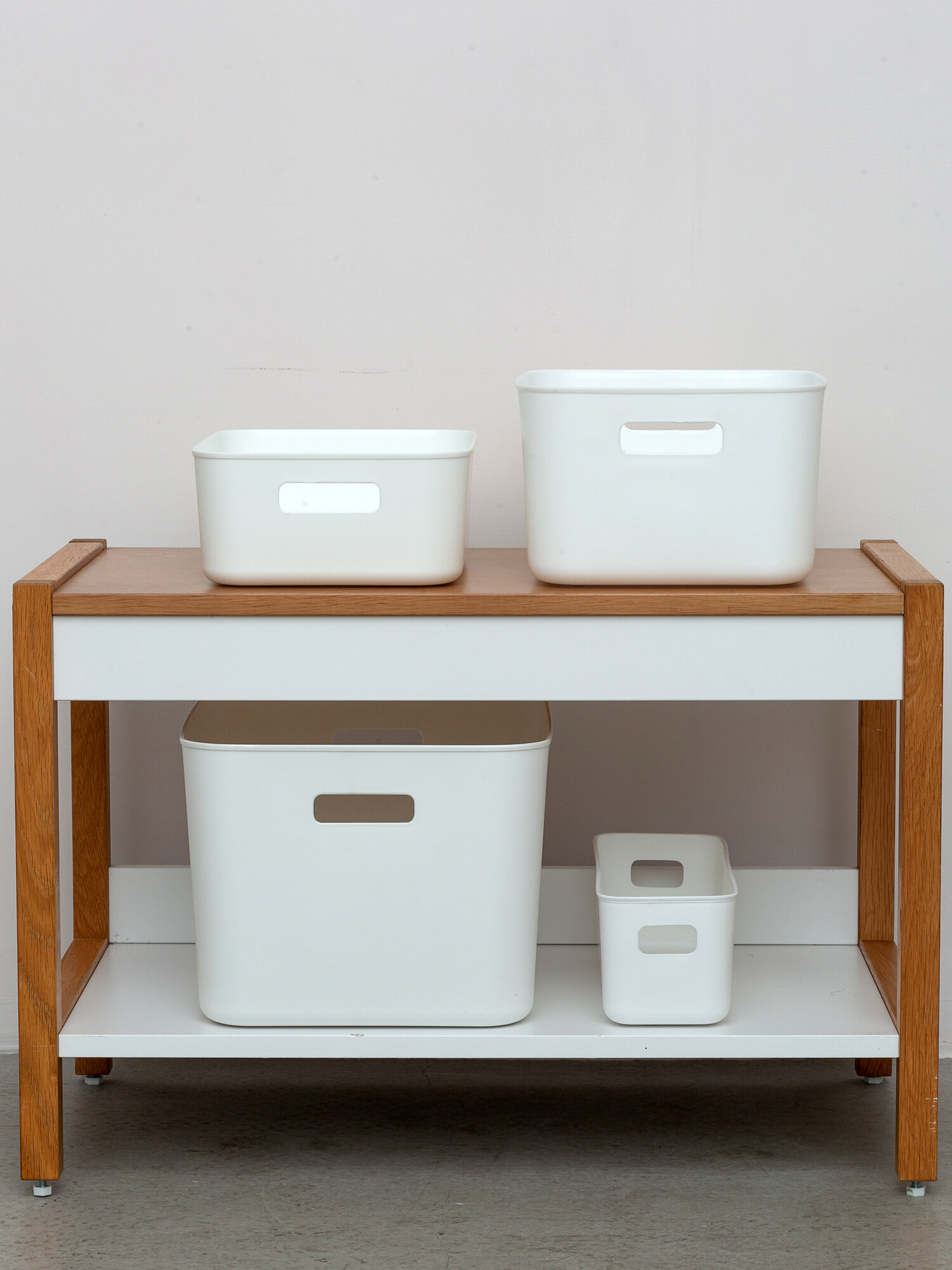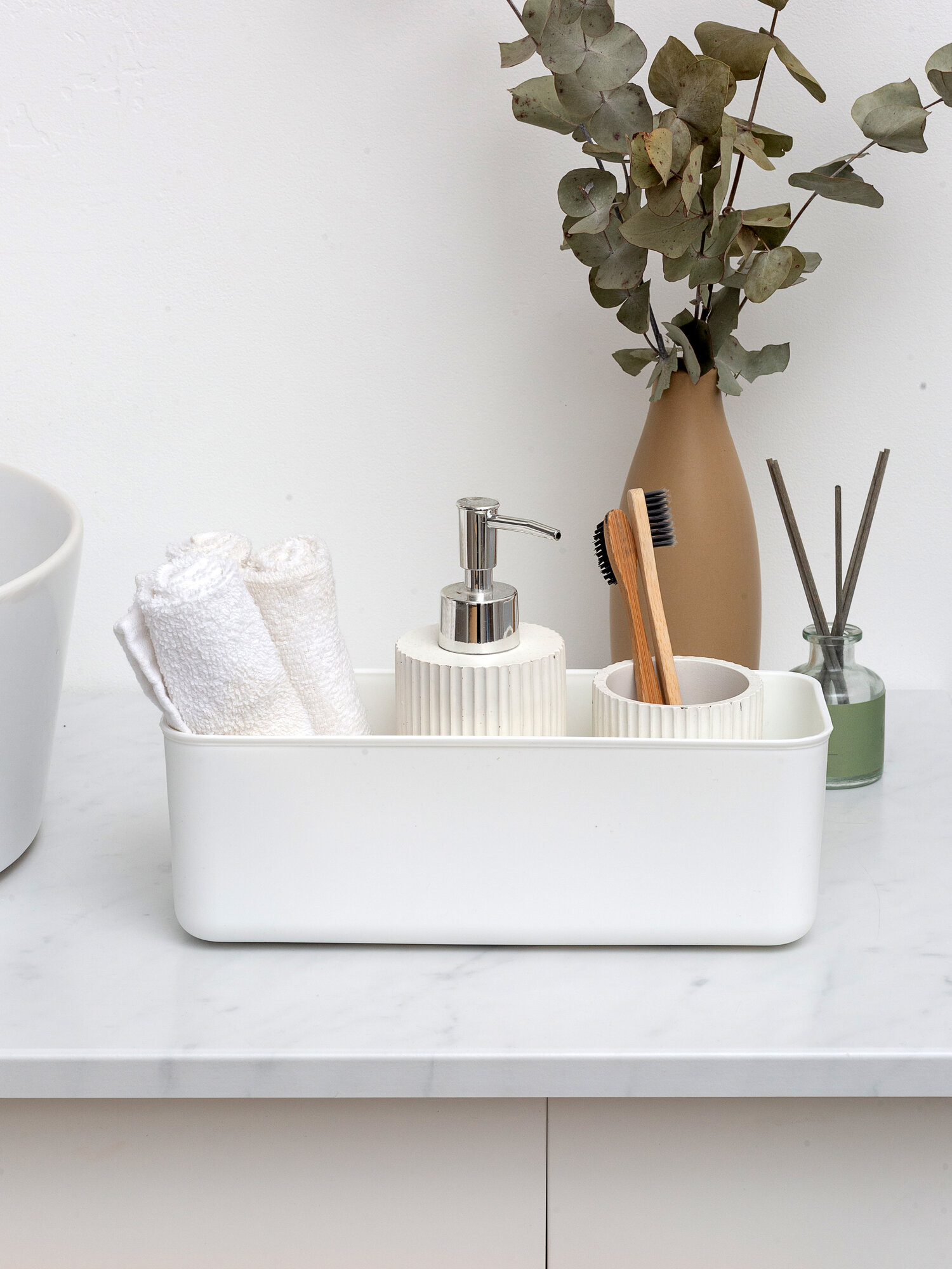 Короб стеллажный пластиковый, Контейнер для хранения белый в ванной, для косметики, Органайзер для хранения с ручками