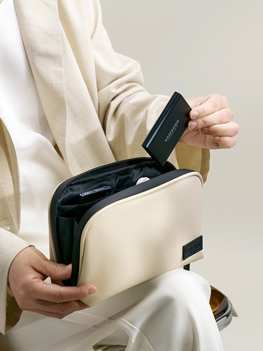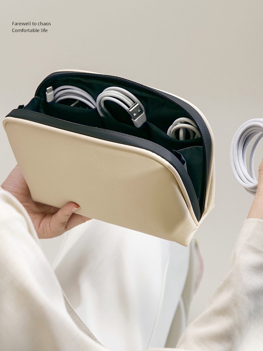 Купить Органайзер для проводов зарядок аксессуаров дорожный, короб, коробка, бежевый водоотталкивающий