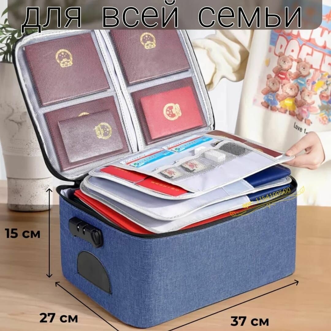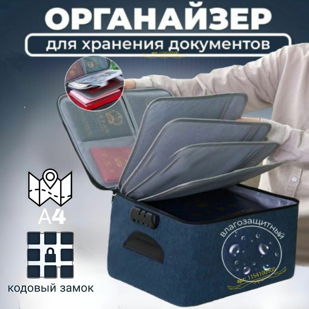 Синий органайзер для хранения документов А4 с кодовым замком. Сумка для документов. Дорожный органайзер для документов BERTA