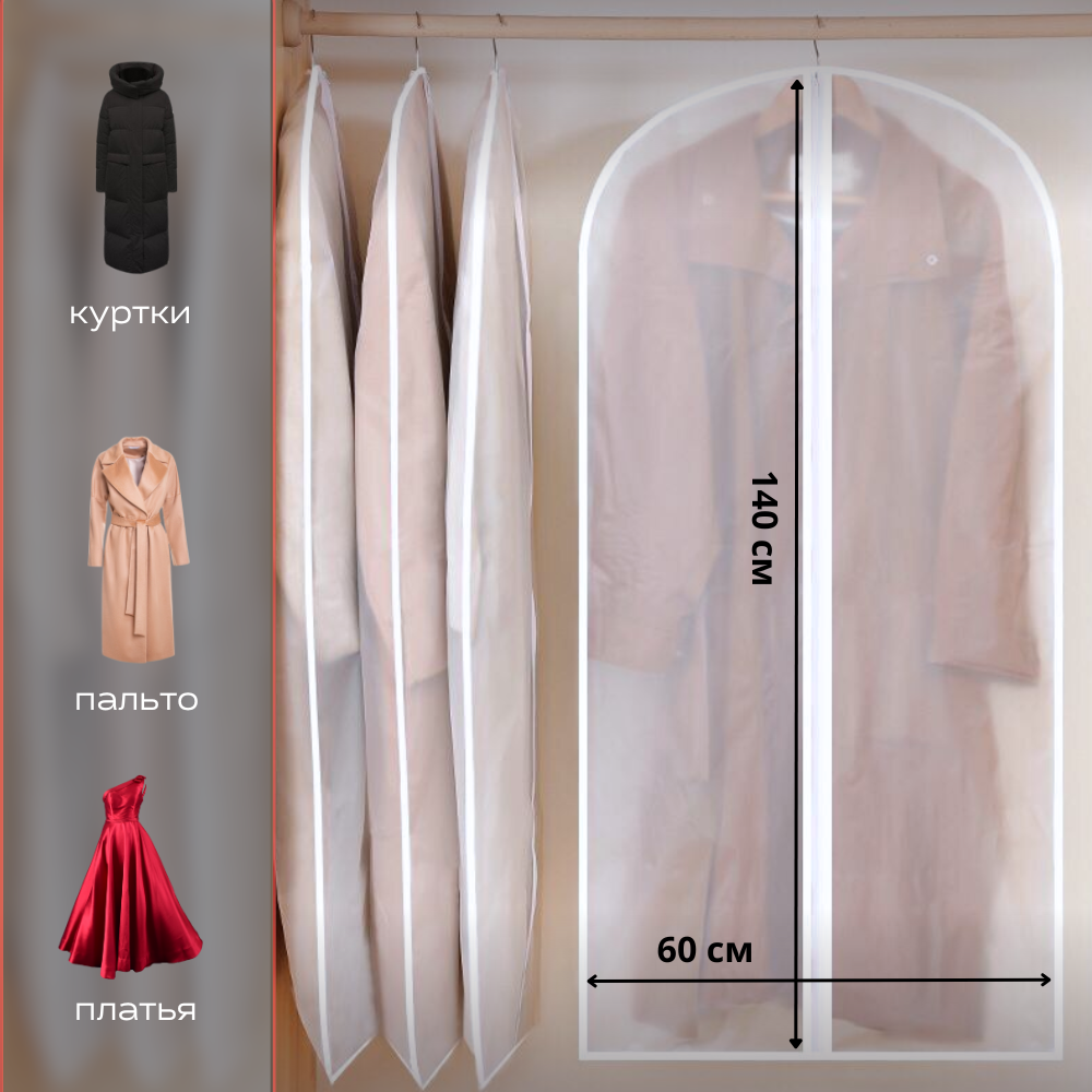 СохранитьЧехлы для одежды и хранения вещей прозрачные 140 см, 5 шт - №4 интересное: