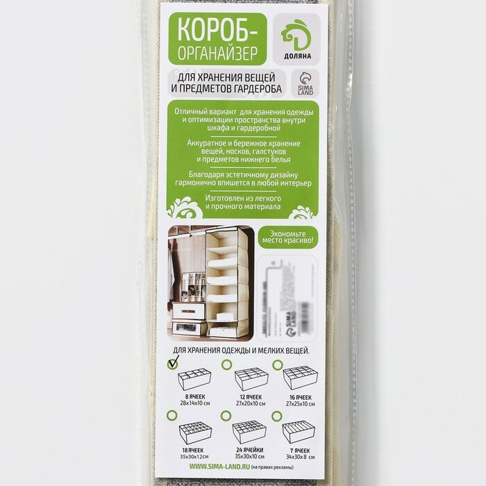 Органайзер для хранения белья и аксессуаров с разделителями Доляна "Смарт" 8 отделений, 28,5х13,5х10см