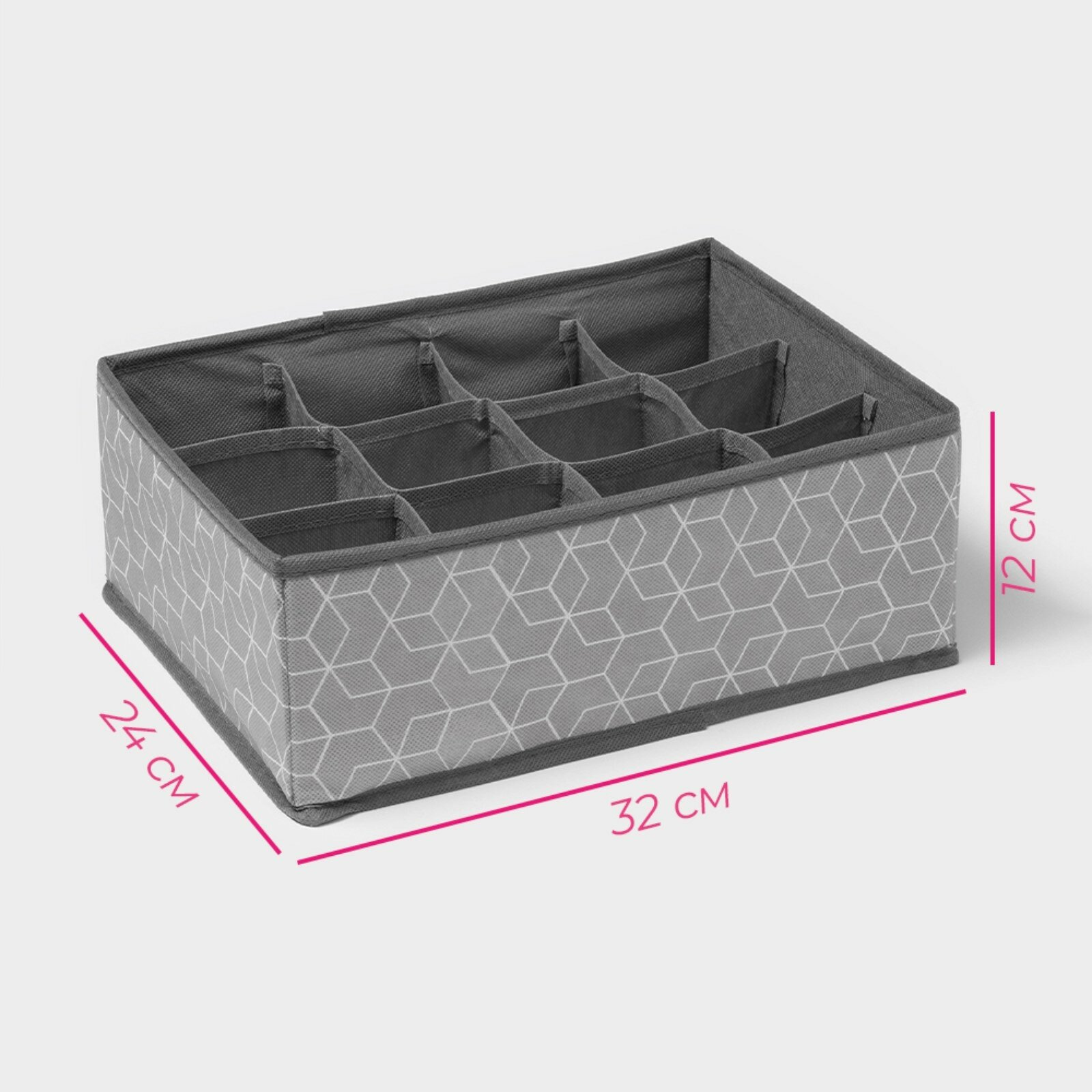 Органайзер для хранения белья Доляна «Фора», 12 ячеек, 32×24×12 см, серый