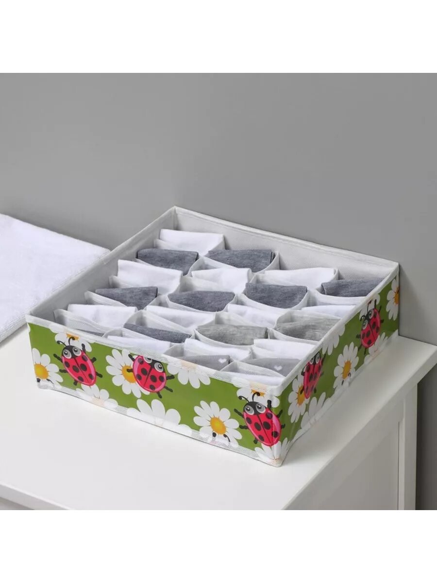 Органайзер для хранения белья Доляна «Божьи коровки», 24 ячейки, 30×33×10 см, зелёный
