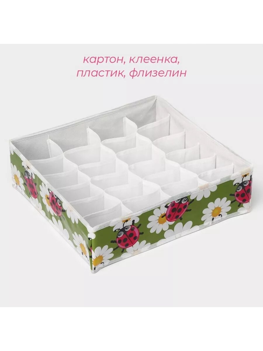 Купить Органайзер для белья Доляна Божьи коровки, 24 ячейки, 30х33х10 см, цвет зеленый
