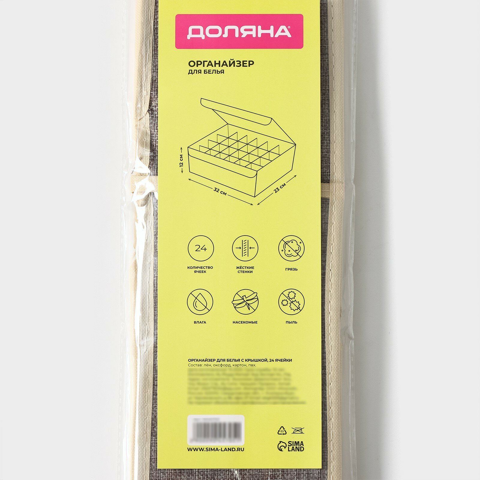 | Комплектация | органайзер для белья с прозрачной крышкой Доляна «Тео», 12 ячеек, 32×23×12 см |