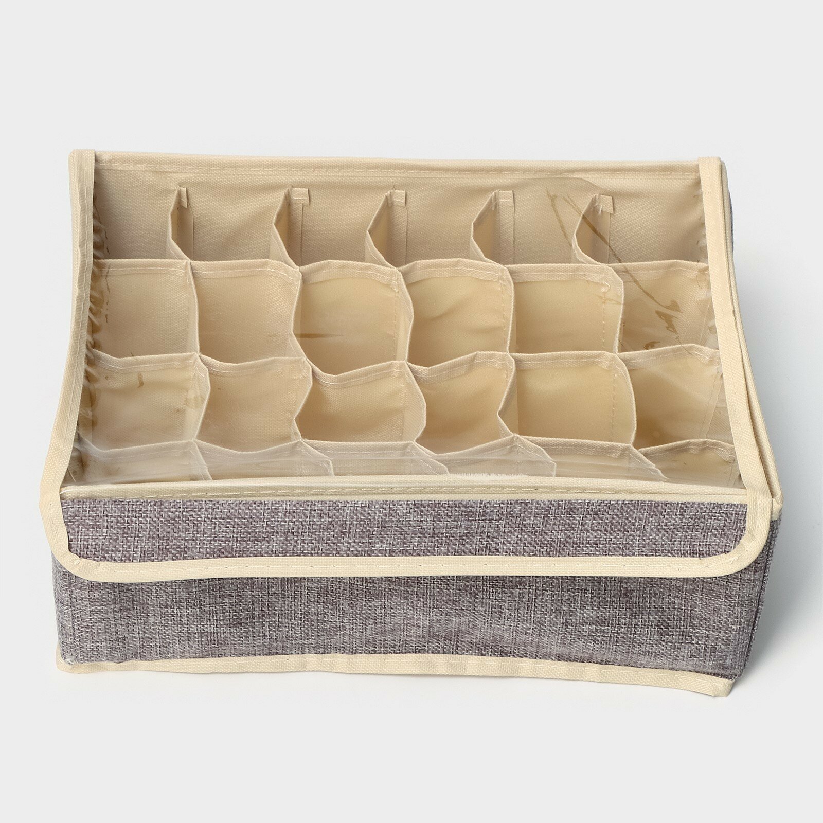 Купить Органайзер для хранения белья с прозрачной крышкой Доляна «Тео», 24 ячейки, 32×23×12 см, цвет серый
