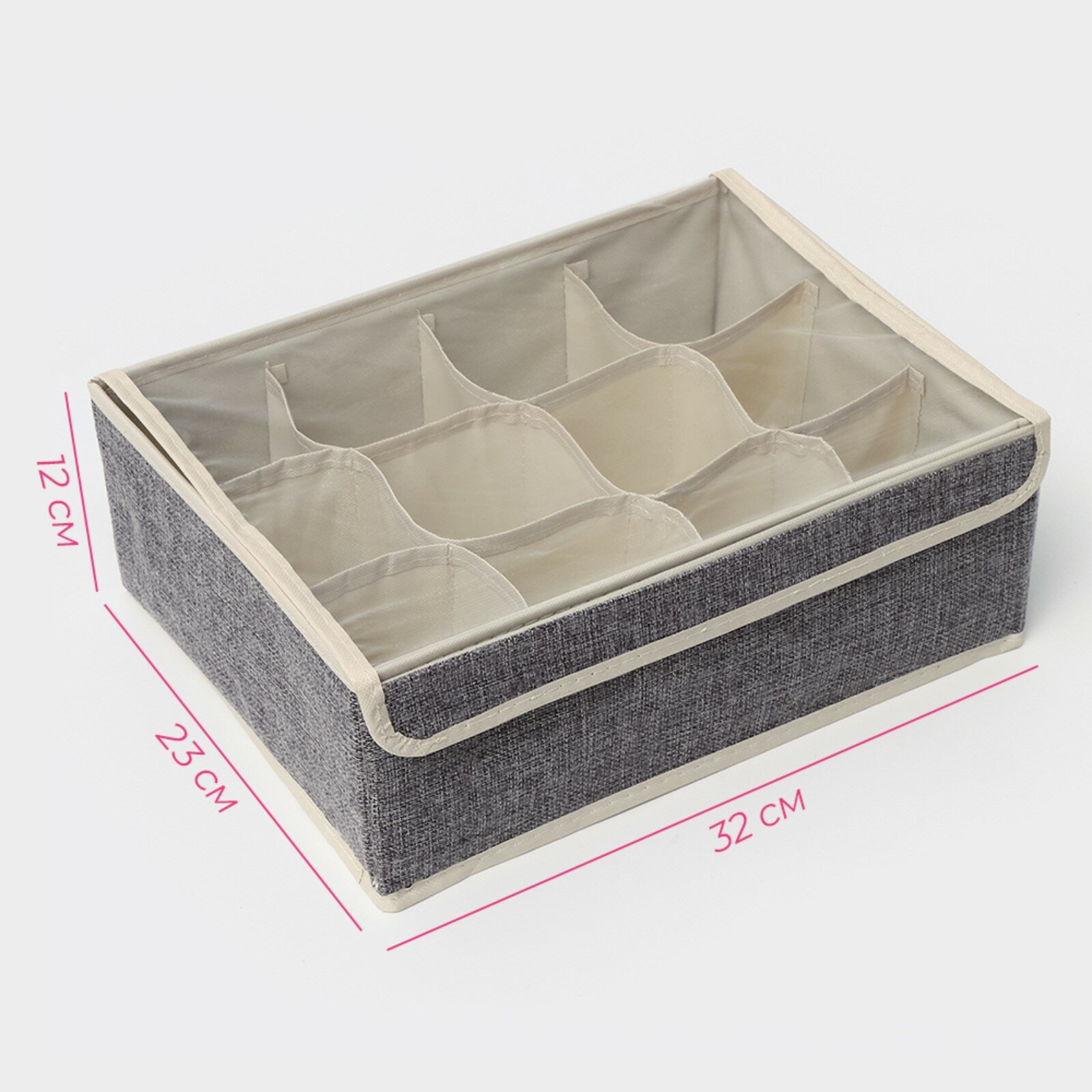 Органайзер для хранения белья Доляна «Фора», 12 ячеек, 32×24×12 см, серый