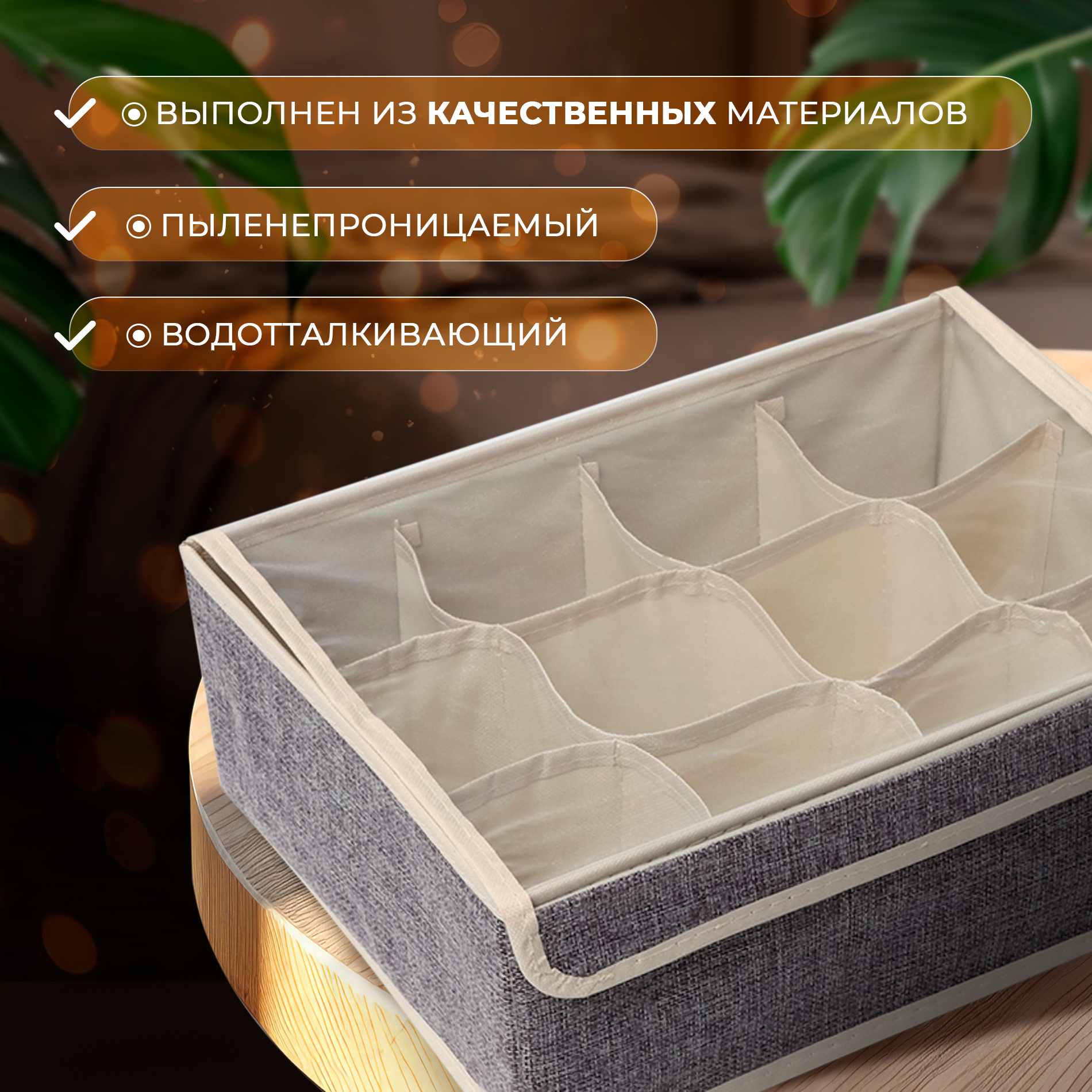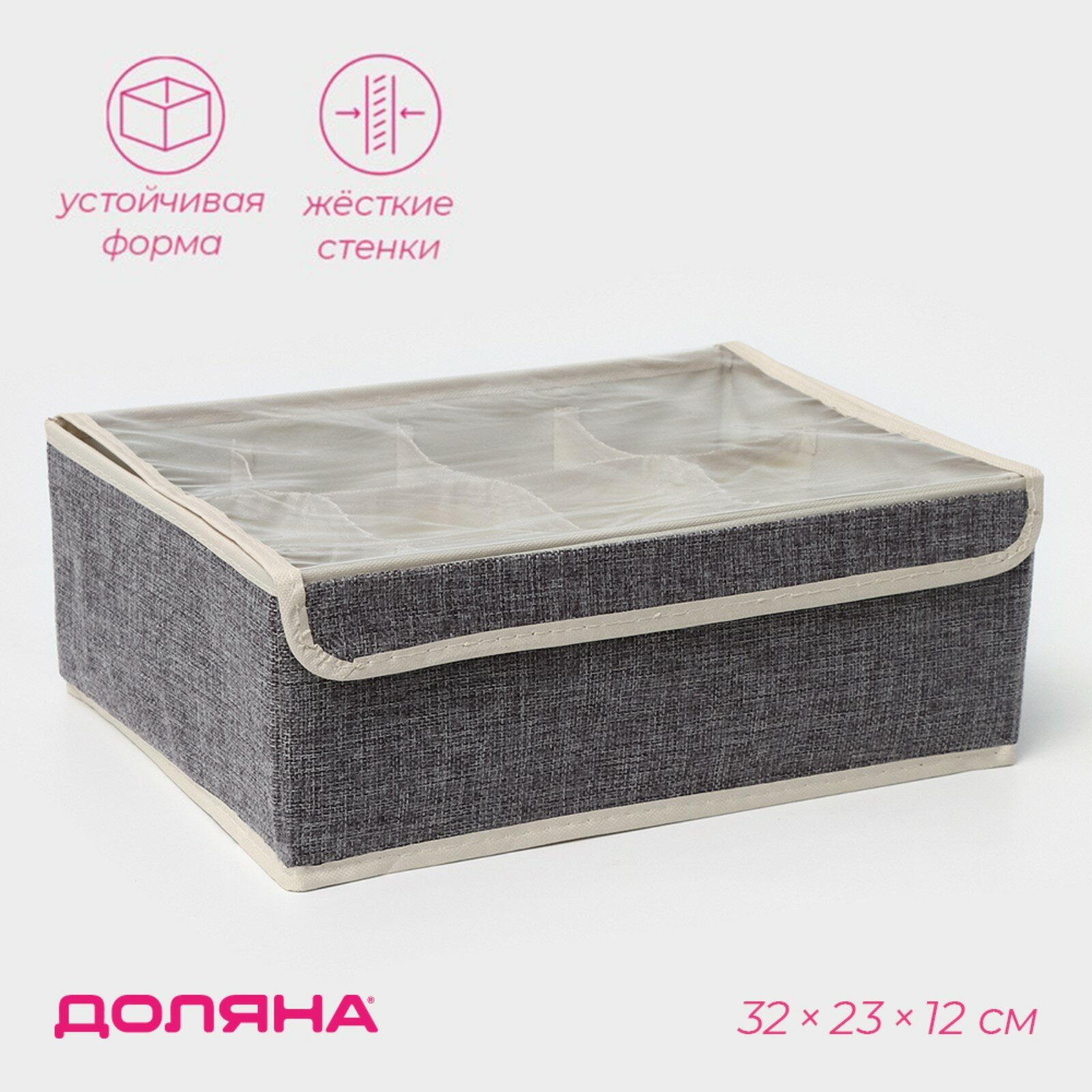 | Комплектация | органайзер для белья с прозрачной крышкой Доляна «Тео», 12 ячеек, 32×23×12 см |