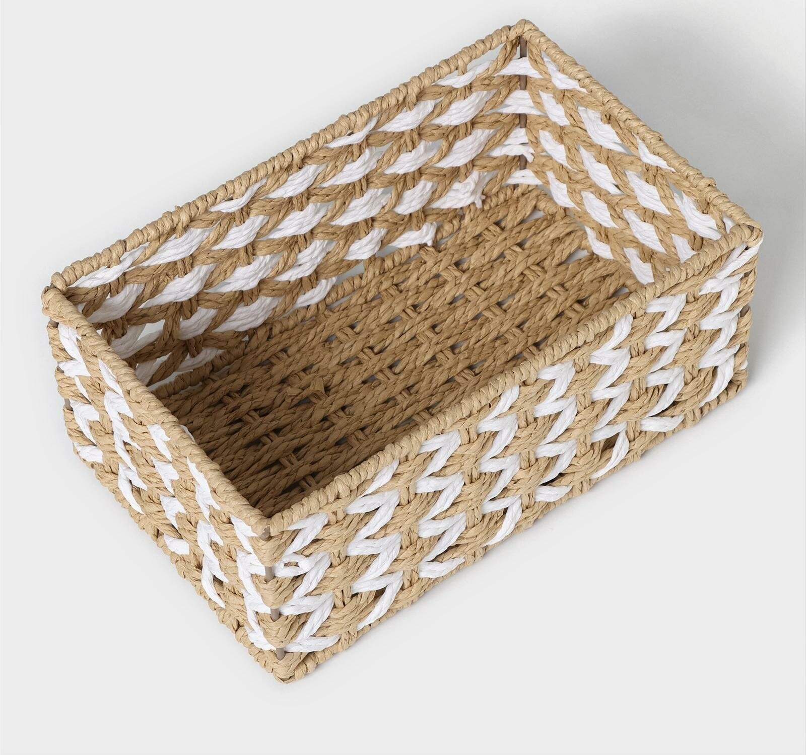 Купить Корзина для хранения плетёная ручной работы Доляна «Айка», 27,5×17×12 см, цвет бежево-белый