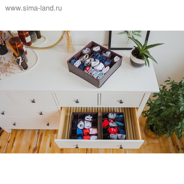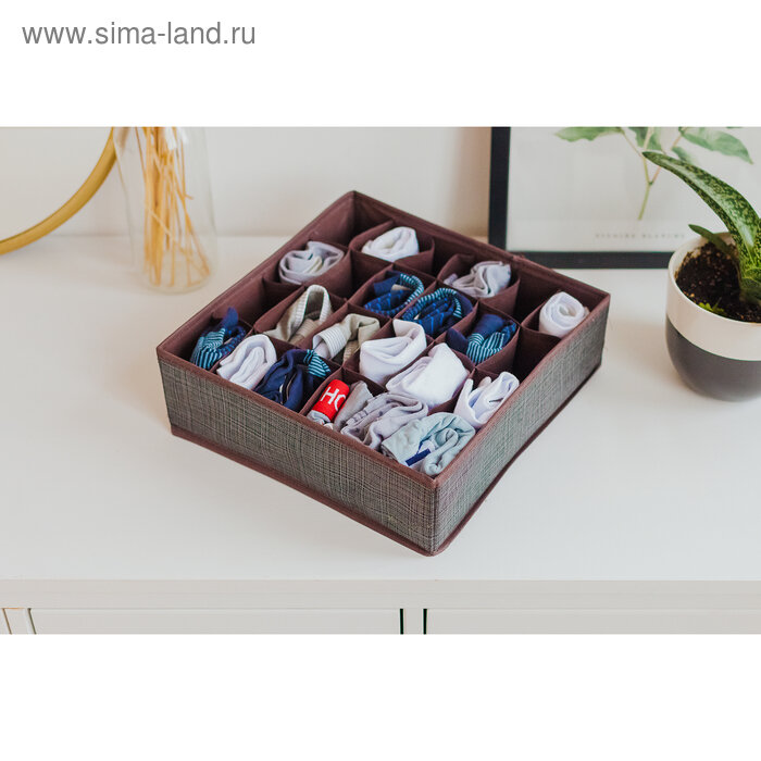 Органайзер для хранения белья Доляна «Браун», 24 отделения, 30×33×10 см, цвет коричневый