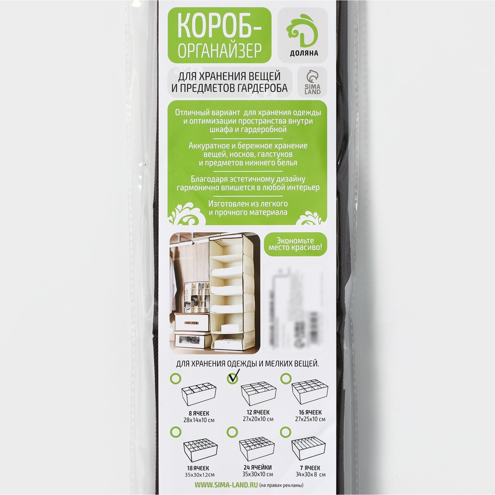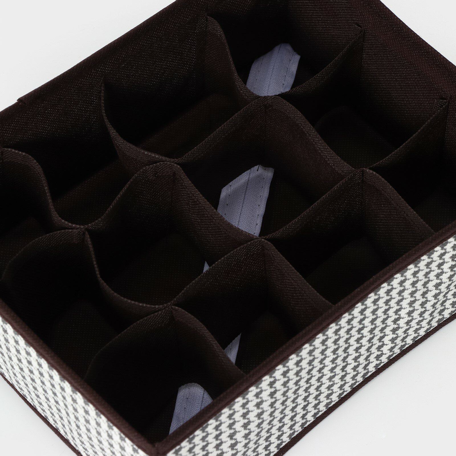 Органайзер для хранения белья Доляна «Браун», 12 ячеек, 32×24×12 см, коричневый