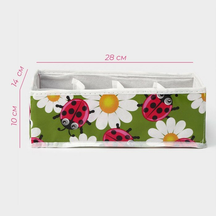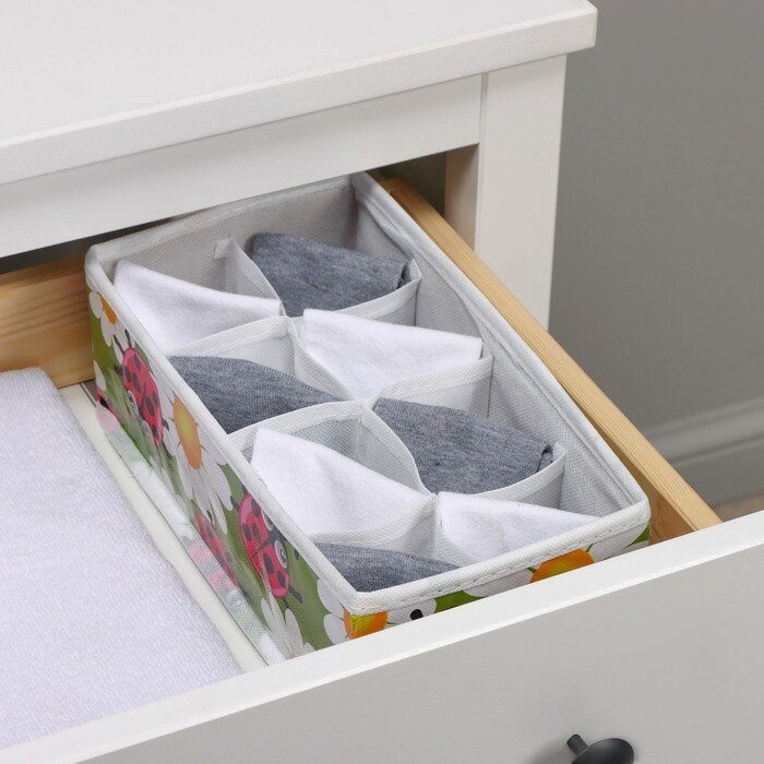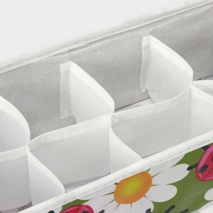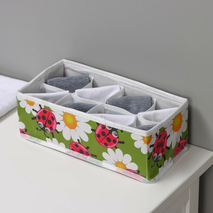 Купить Органайзер для хранения белья Доляна «Божьи коровки», 8 ячеек, 28×14×10 см, цвет зелёный