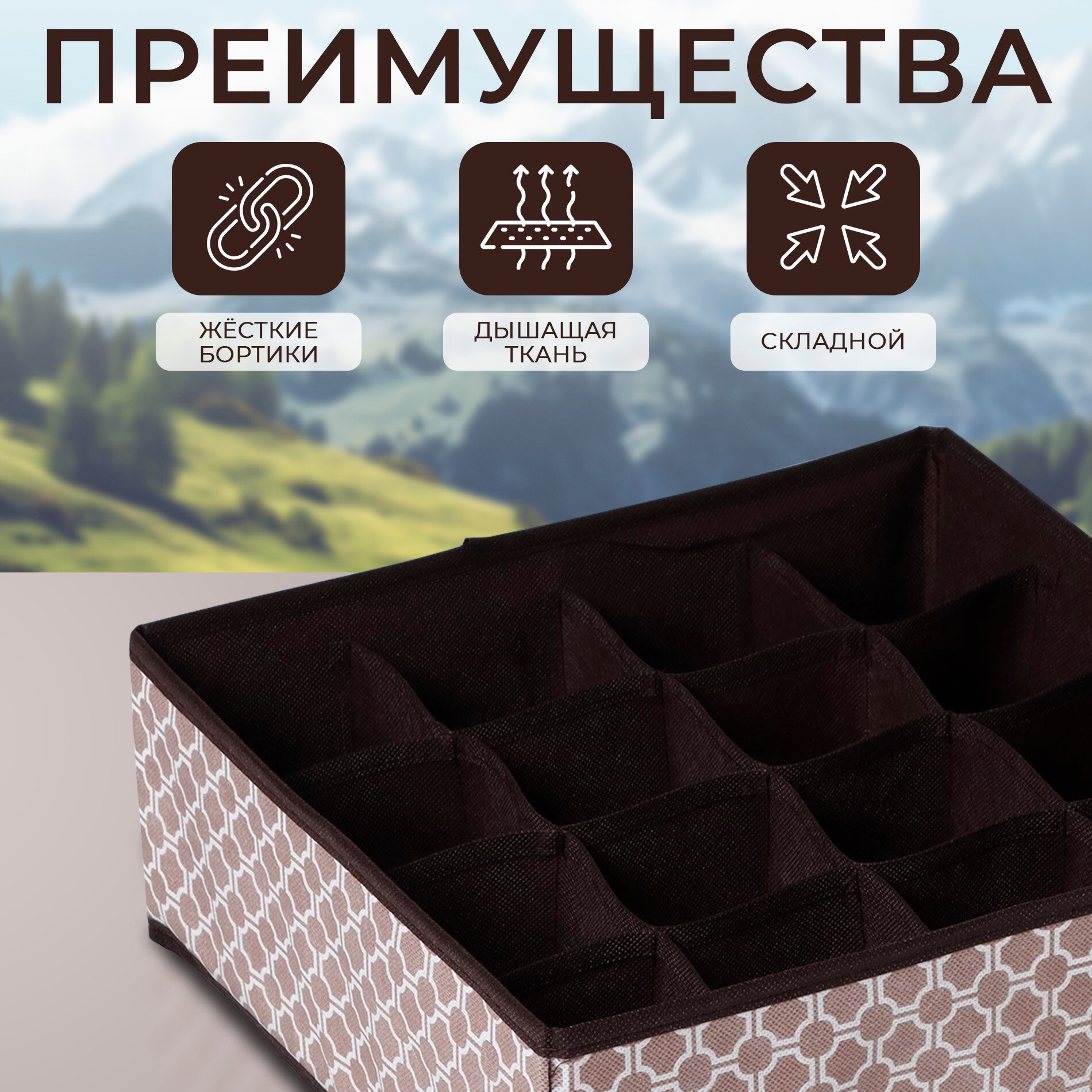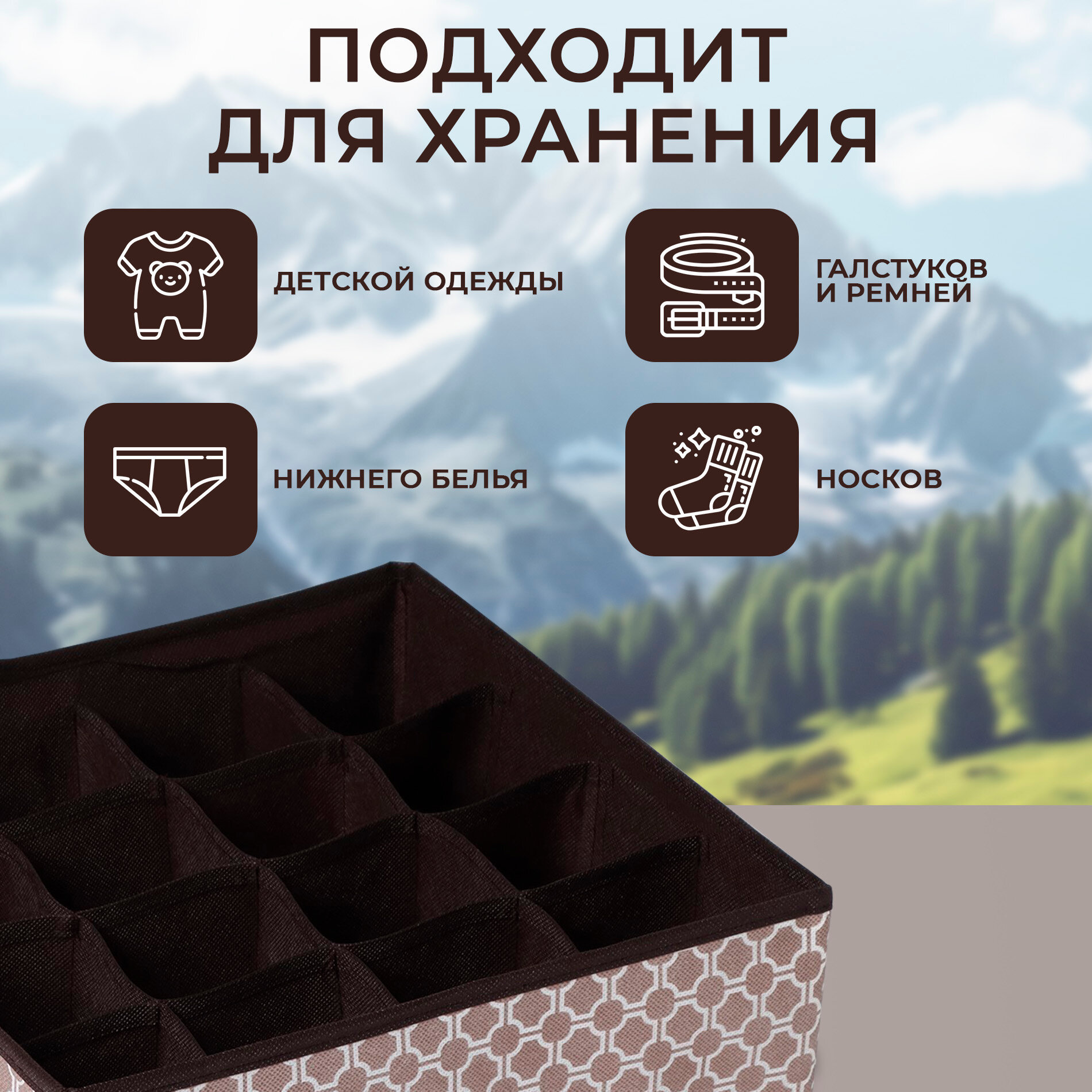 Органайзер для хранения белья «Астра», 24 ячейки, 38×30×12 см, цвет коричневый