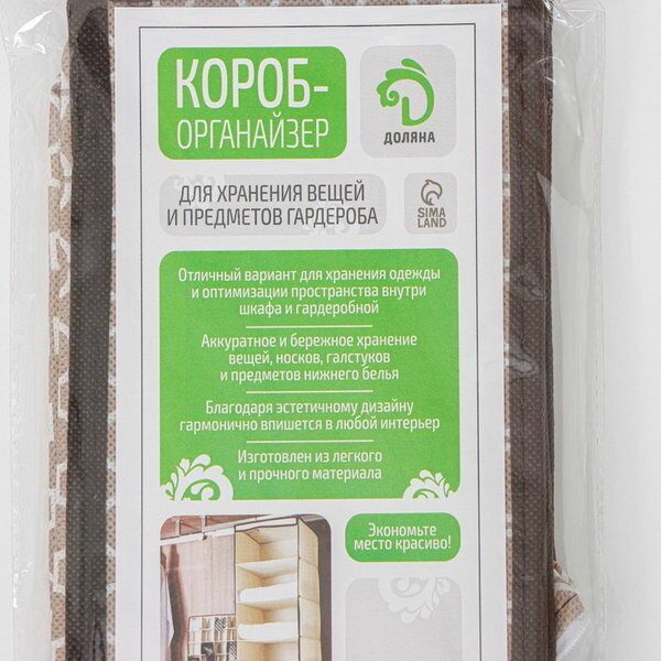 | Особенности | на молнии / плетеная / подвесная / подвесной / подкроватный / прозрачный / ручки для переноски / с крышкой / с разделителями / складной |