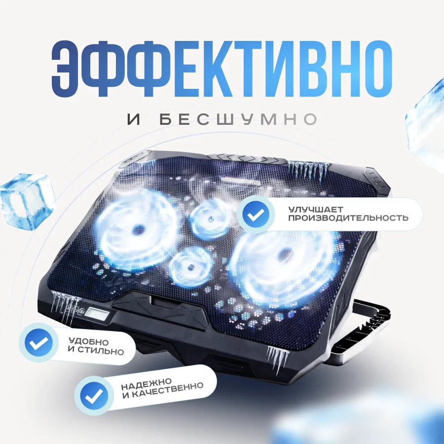 | Особенности | антискользящая поверхность, подсветка, регулировка высоты, регулировка скорости вращения вентилятора, регулируемый угол наклона, с охлаждением, с упором |