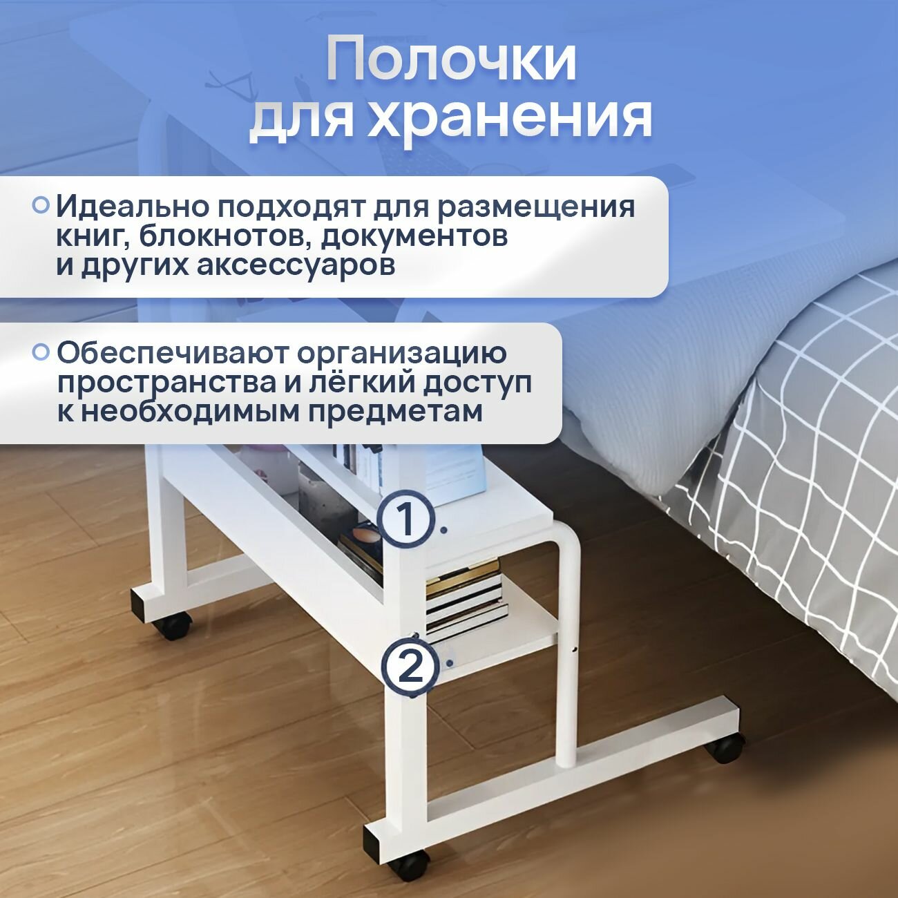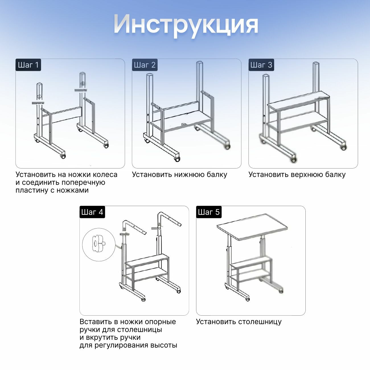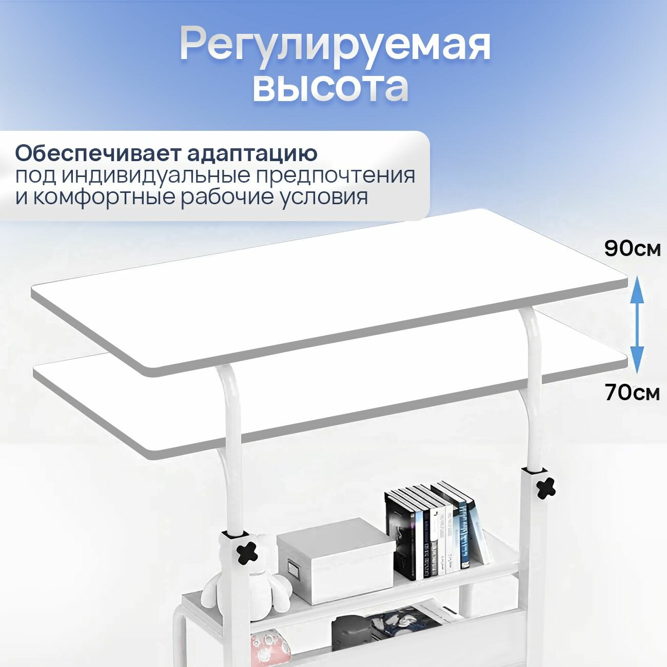 Купить Столик для ноутбука OQQI на колесиках с полками и регулировкой высоты
