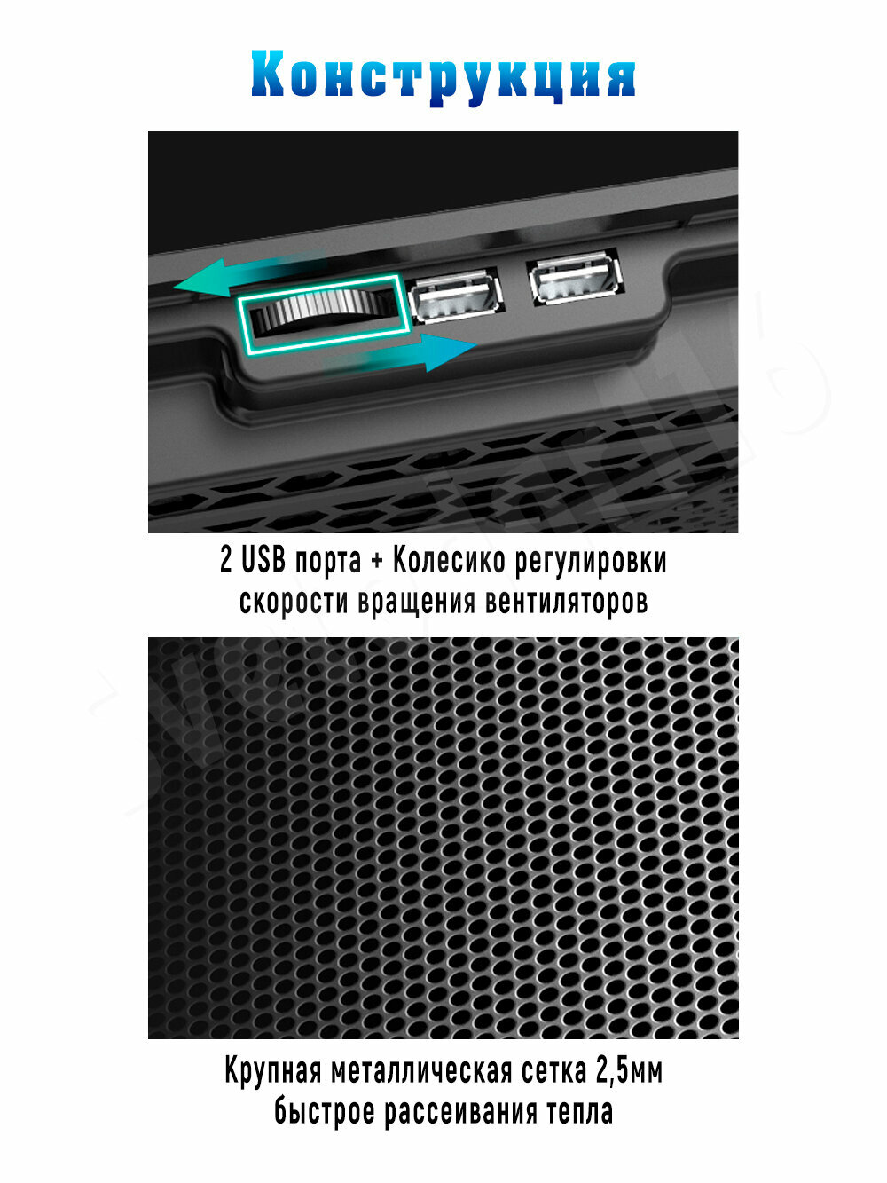 Регулируемая охлаждающая подставка для ноутбуков, 2 вентилятора, подсветка, 5 углов наклона, держатель для смартфона, 2 USB , для экрана 13"-19"